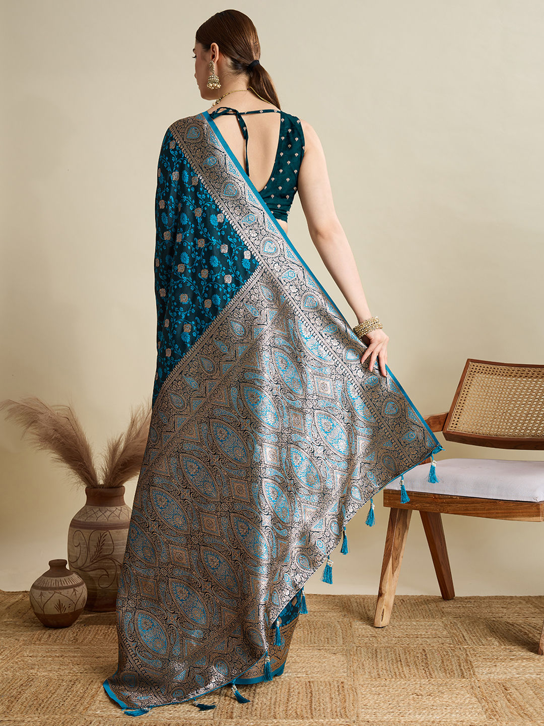 Satin Silk Festive Saree in Purple and Violet with Weaving work