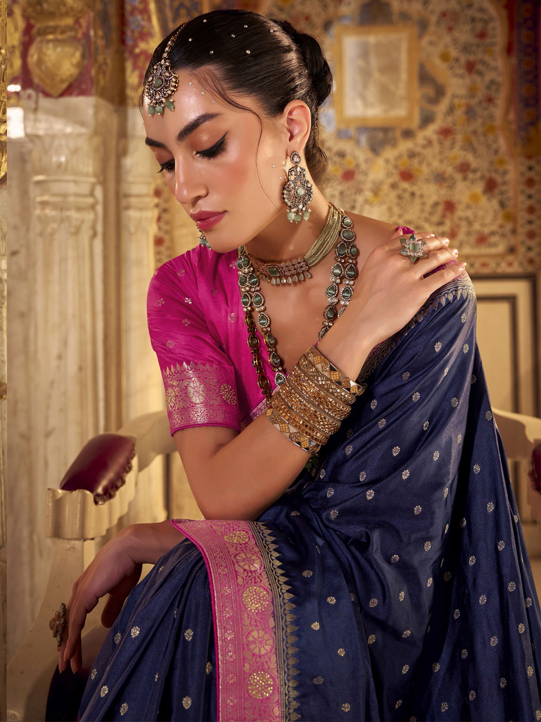 Satin Silk Traditional Saree in Pink and Majenta with Weaving work