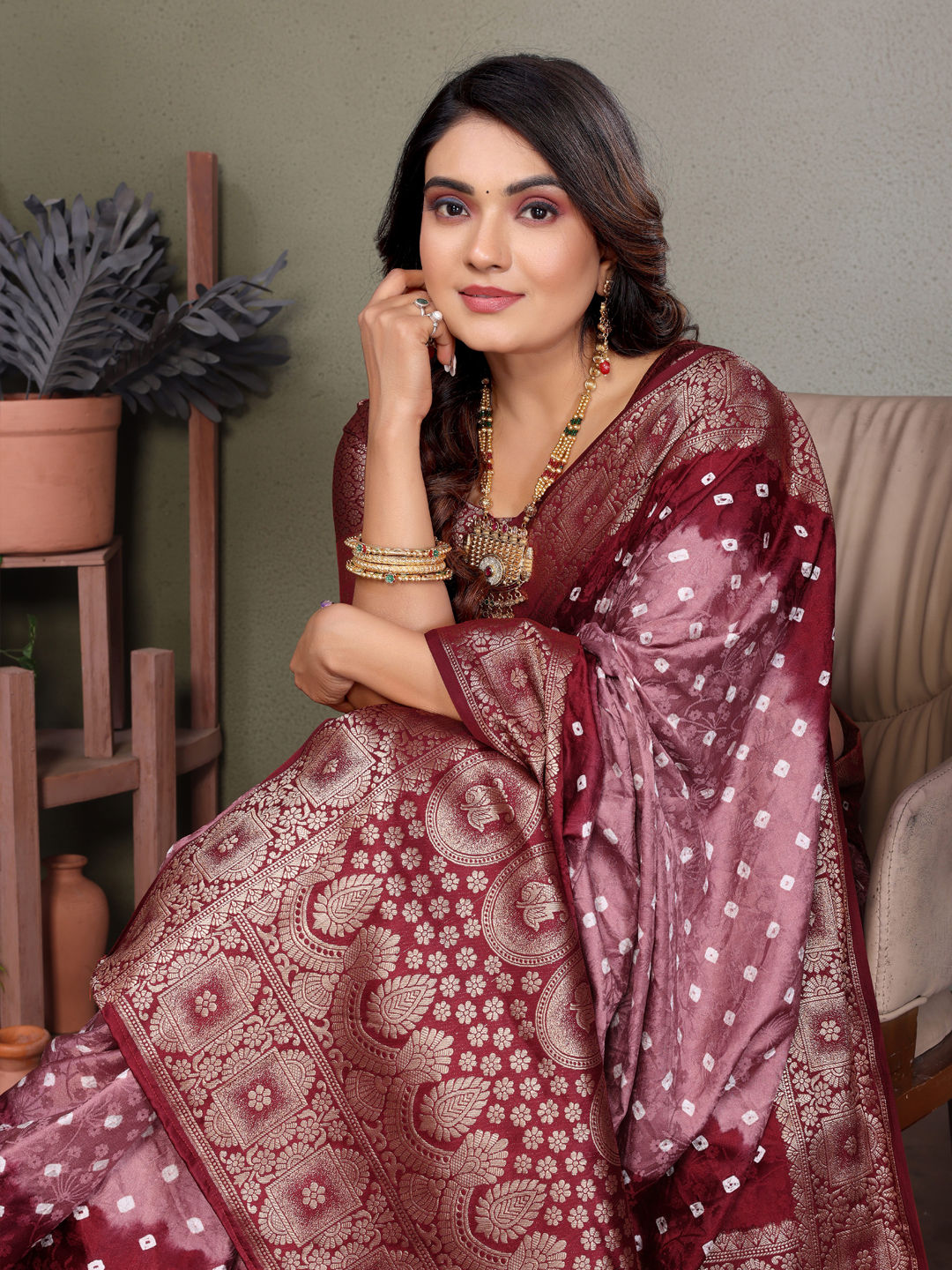 Pink and Majenta color Saree in Satin Silk fabric with Bandhej, Printed work