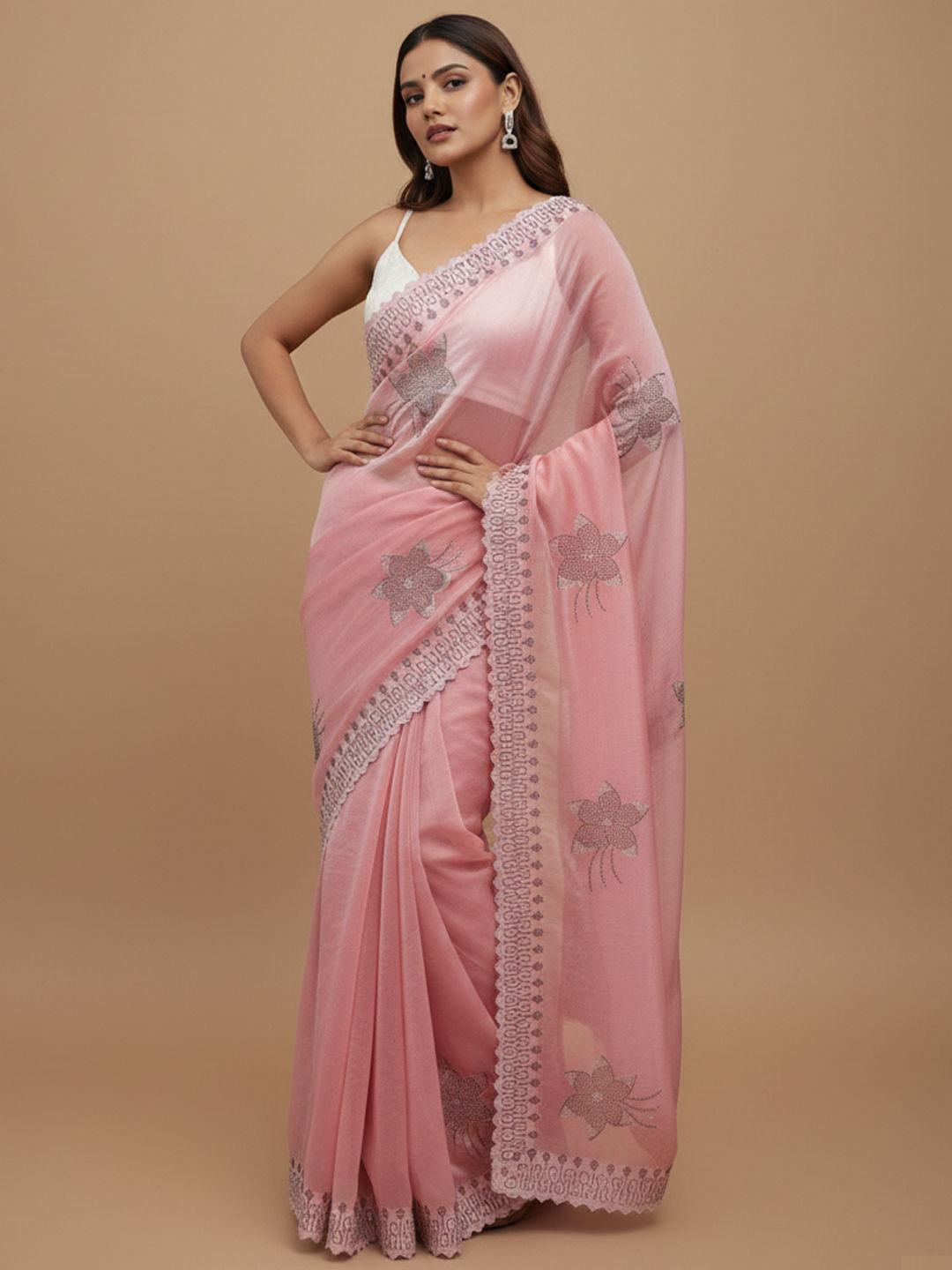 Satin Silk Reception Saree in Pink and Majenta with Stone work