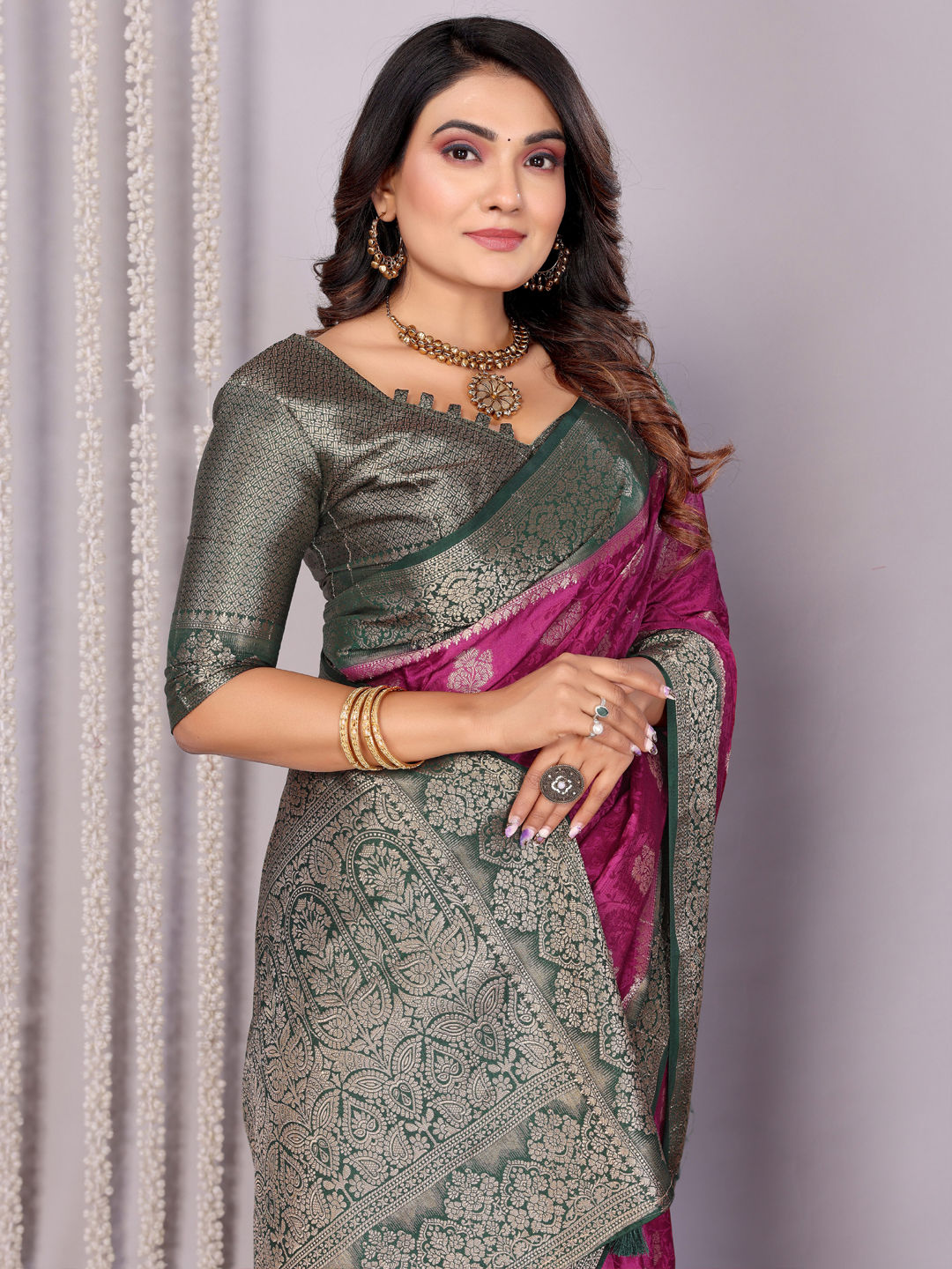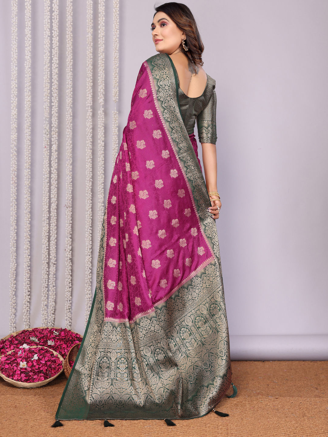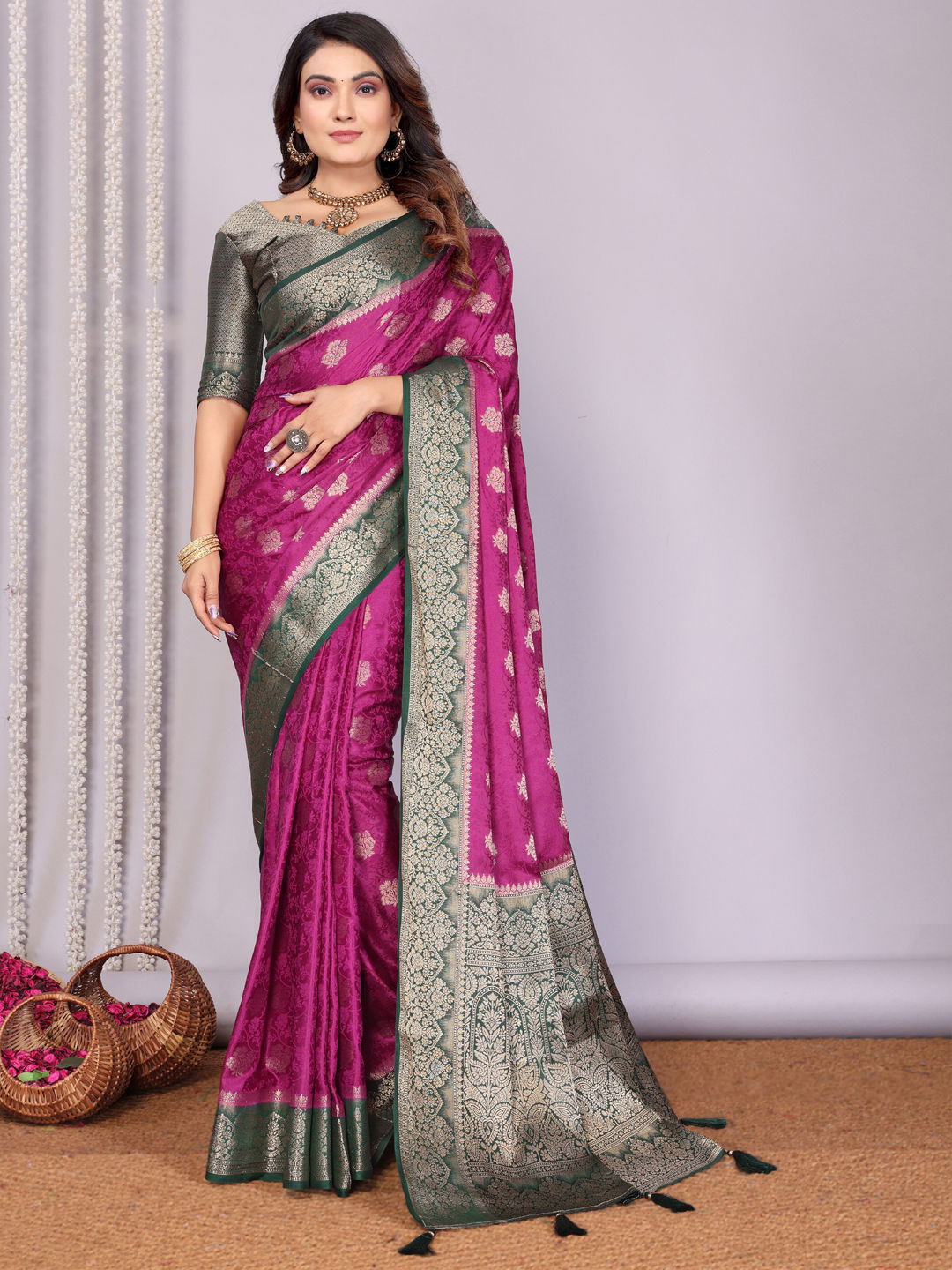Satin Silk Traditional Saree in Pink and Majenta with Weaving work