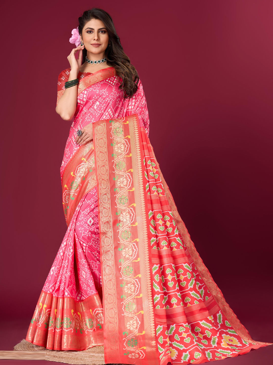 in Pink and Majenta with Weaving work
