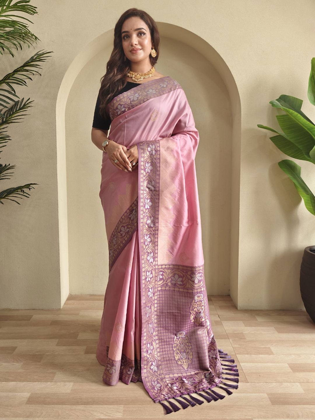 Pink and Majenta color Saree in Satin Silk fabric with Weaving, Zari work