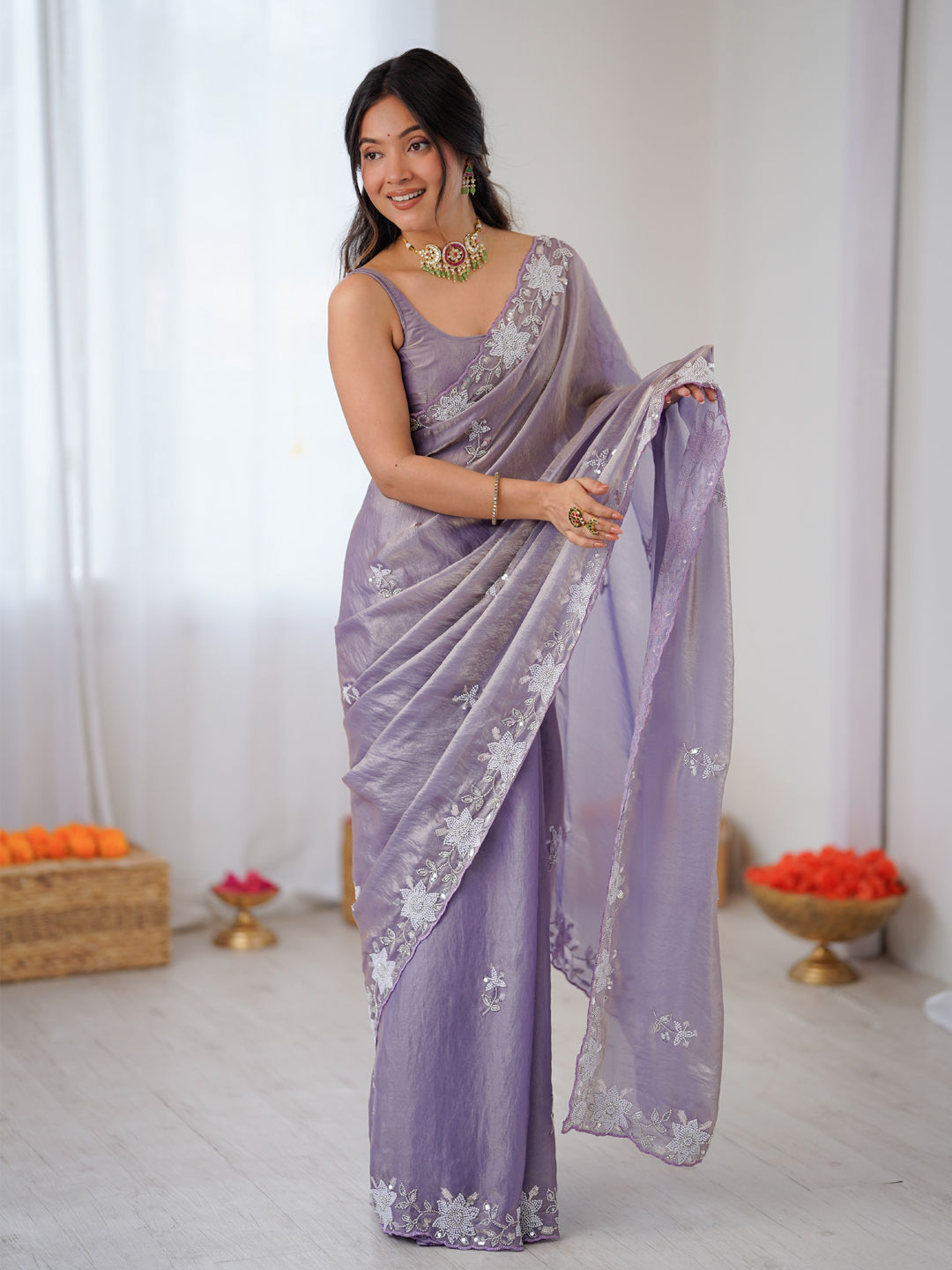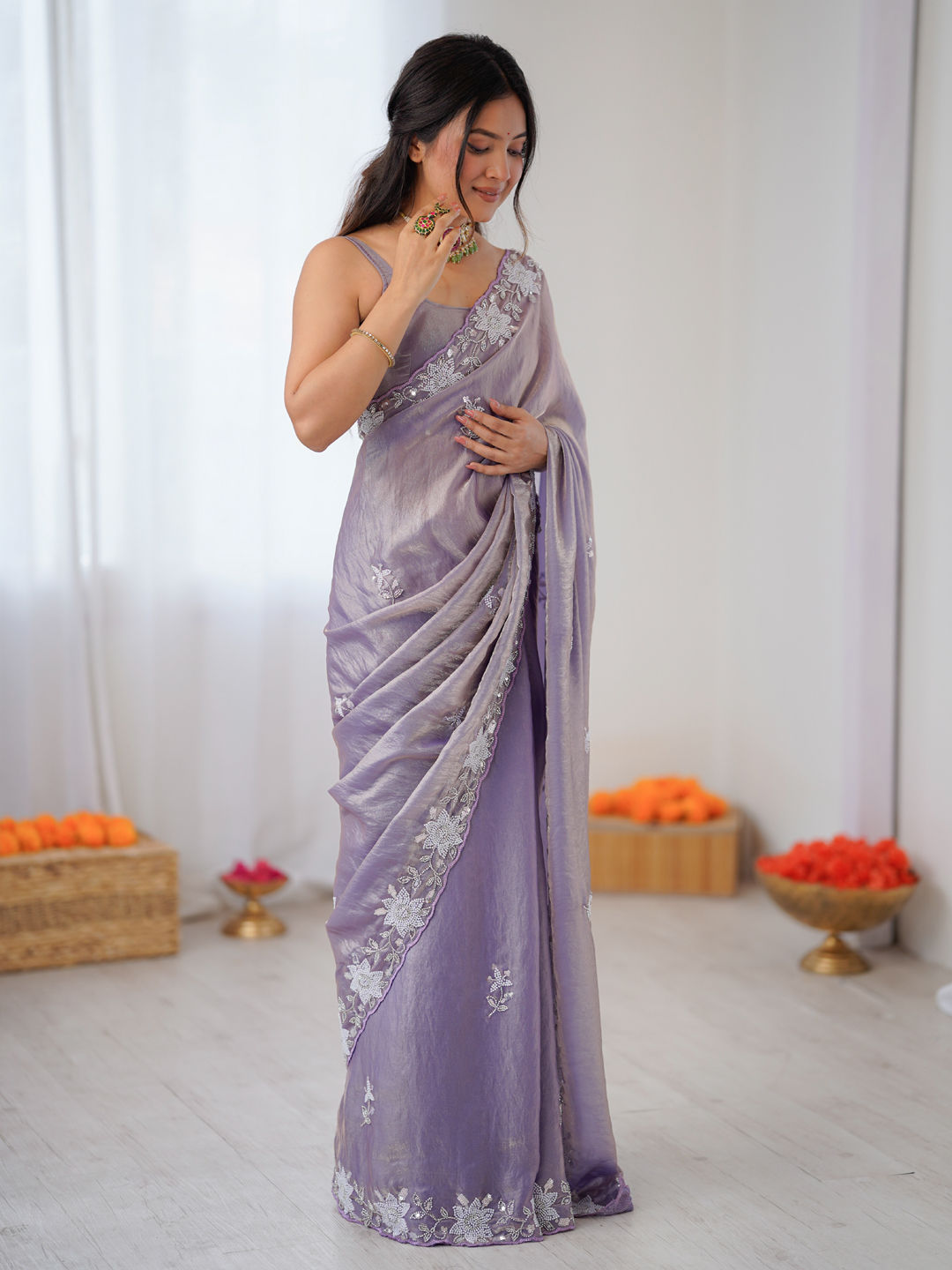 Purple and Violet color Saree in Satin Silk fabric with Cut Dana, Moti, Sequence work