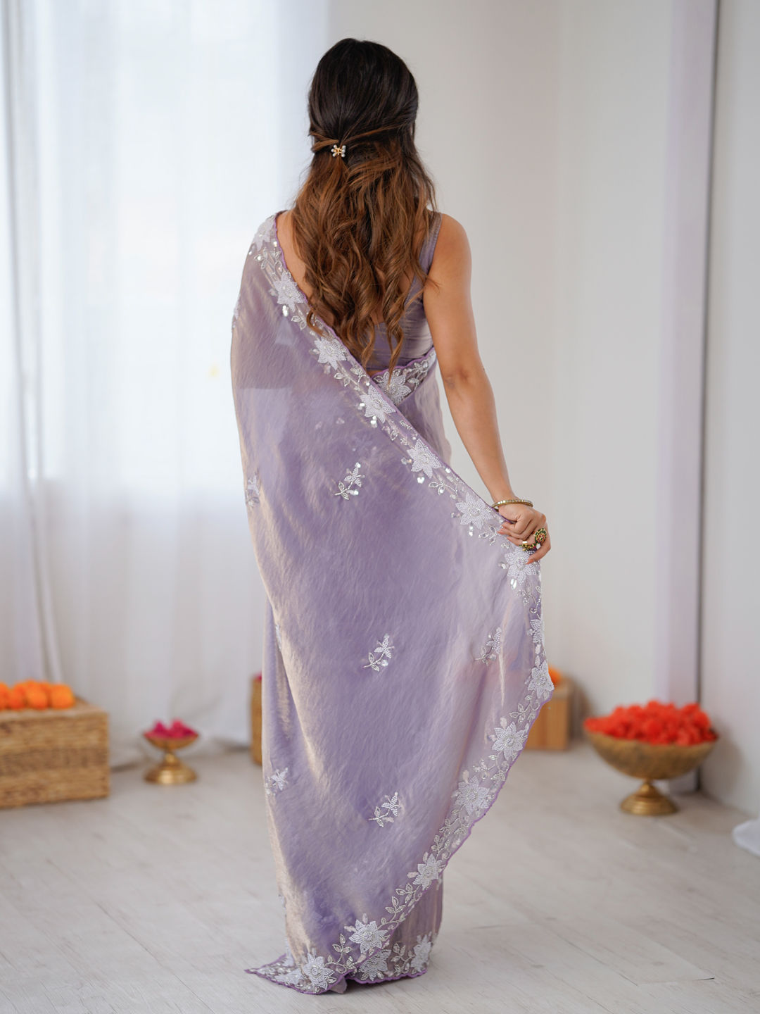 Satin Silk Reception Saree in Purple and Violet with Moti work