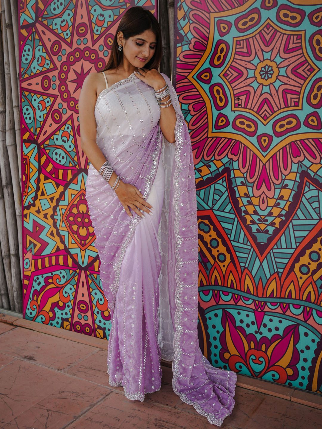 Purple and Violet color Saree in Satin Silk fabric with Bugle Beads, Sequence work