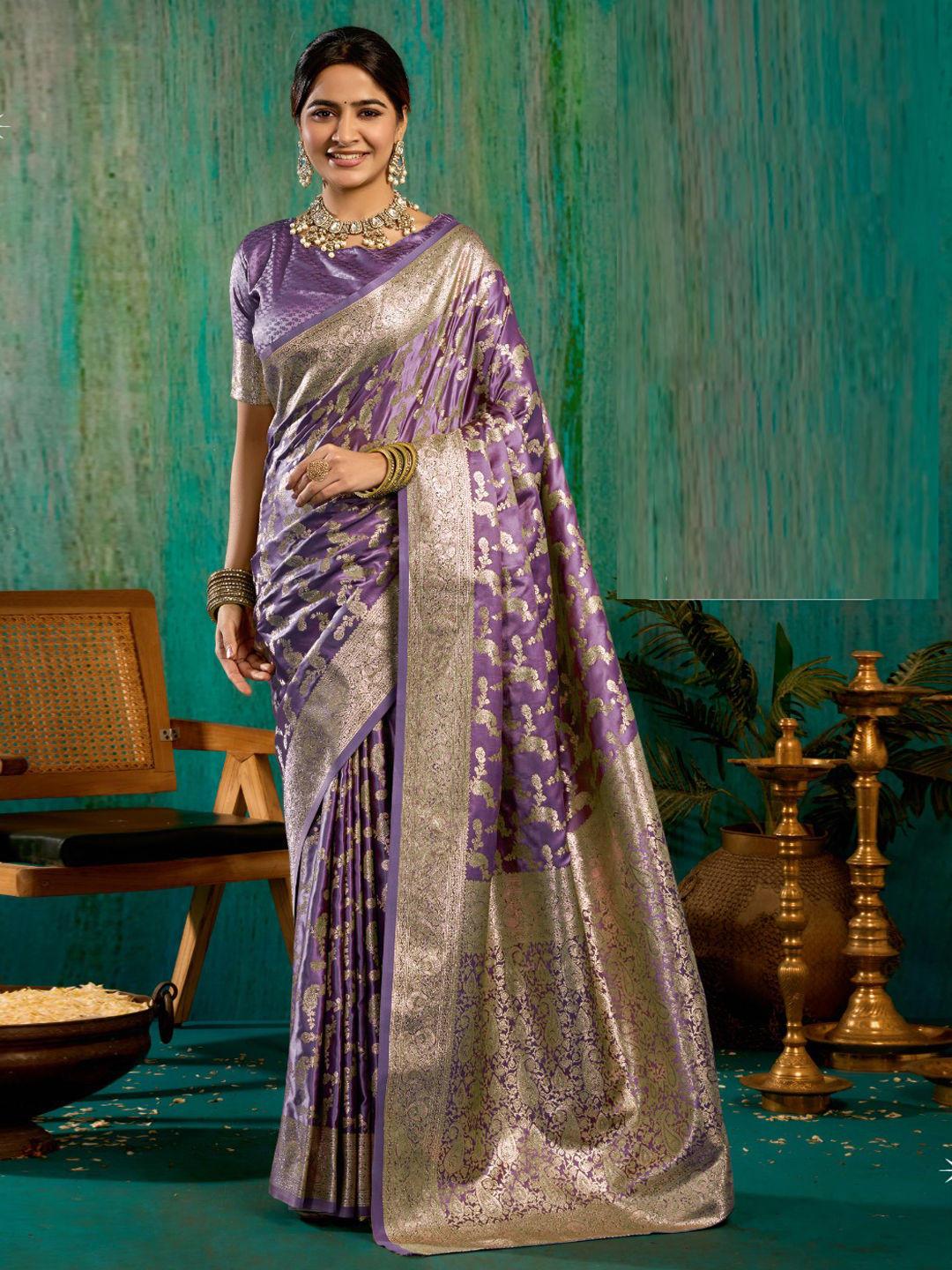 Purple and Violet color Saree in Satin Silk fabric with Weaving work