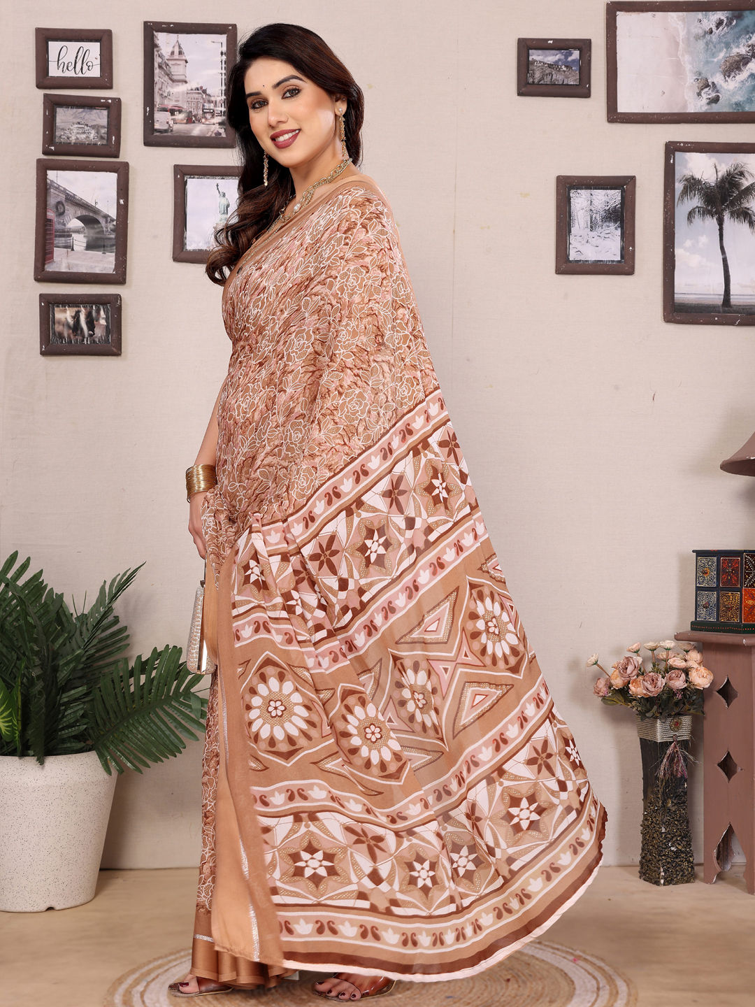 Satin Silk Festive Saree in Black and Grey with Printed work