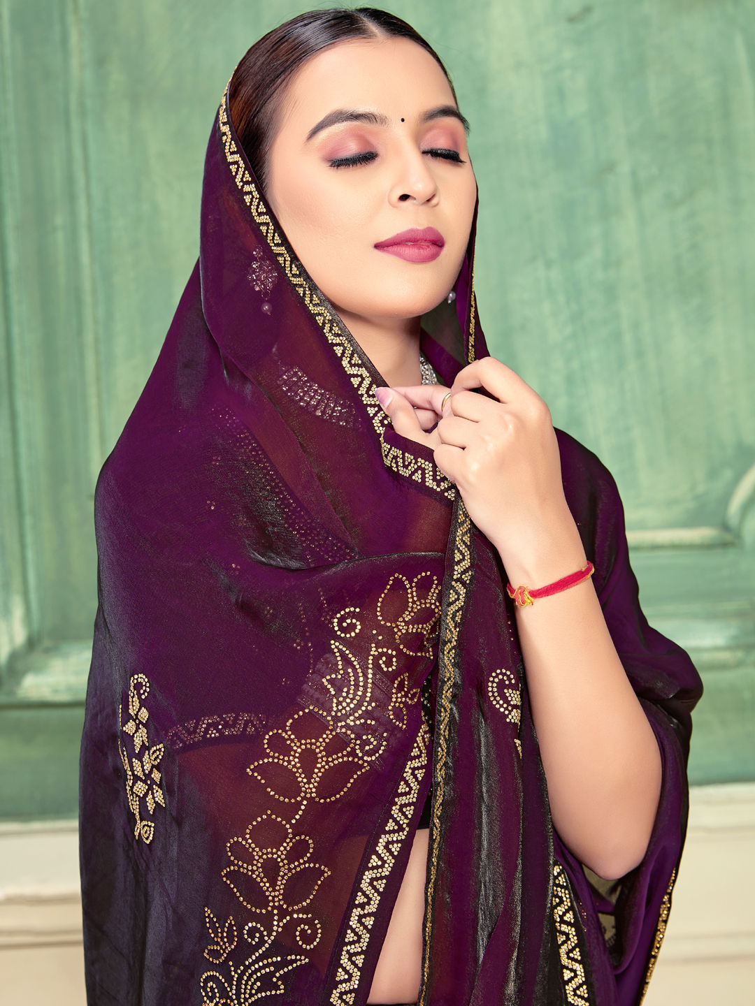 Satin Silk Traditional Saree in Purple and Violet with Zircon work