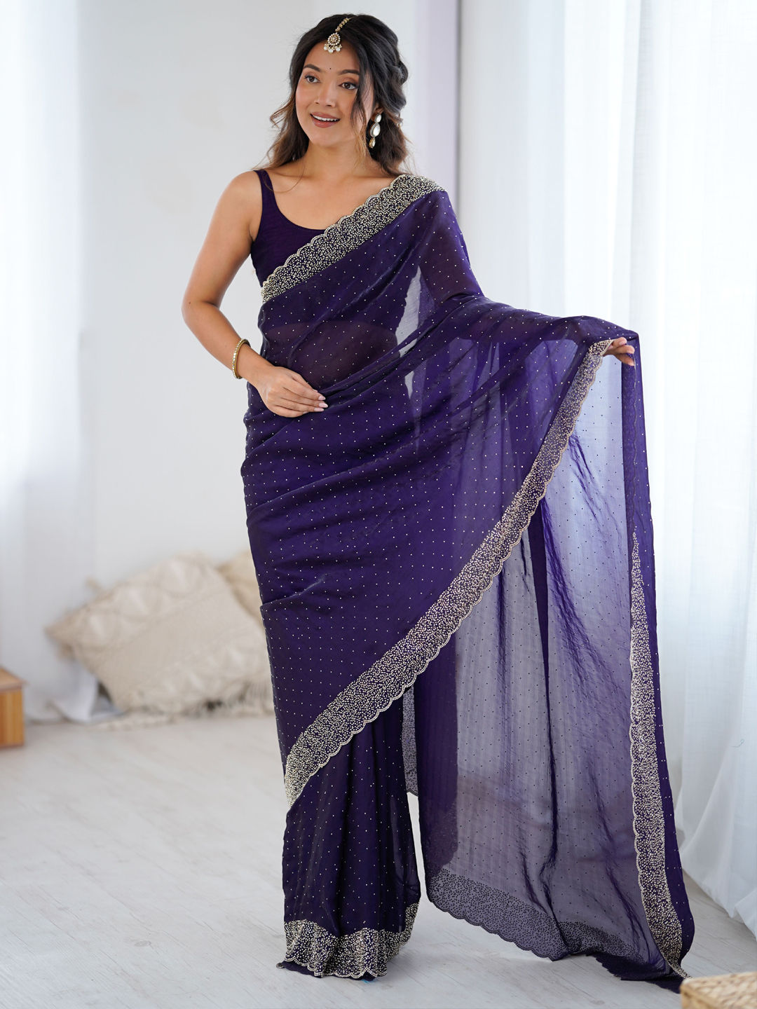 Satin Silk Traditional Saree in Purple and Violet with Zircon work