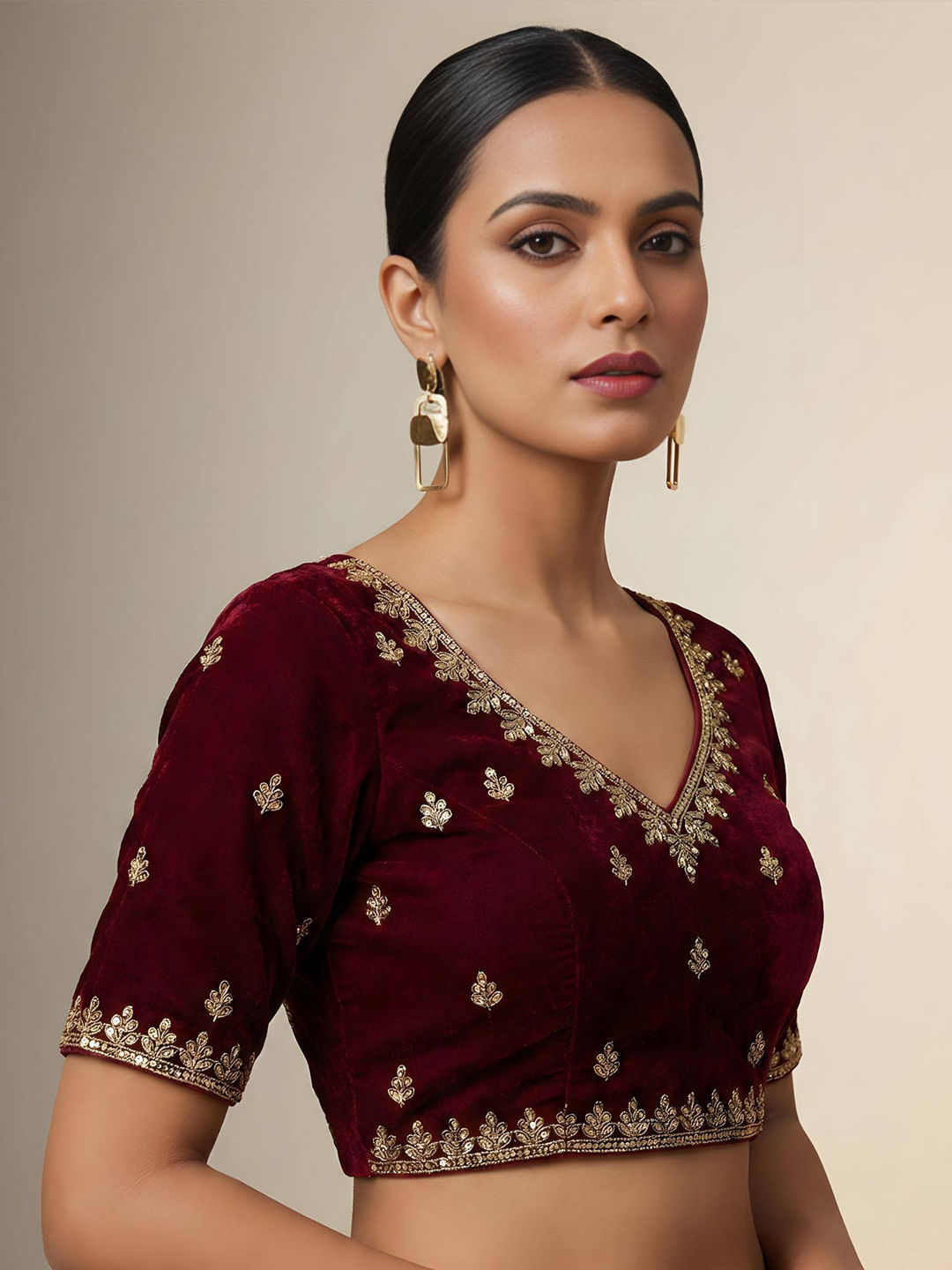 Red and Maroon color Saree in Satin Silk fabric with Embroidered, Sequence work