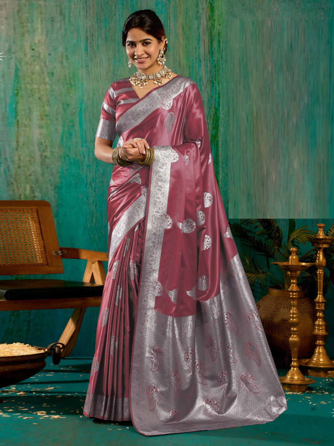 Satin Silk Reception Saree in Pink and Majenta with Weaving work