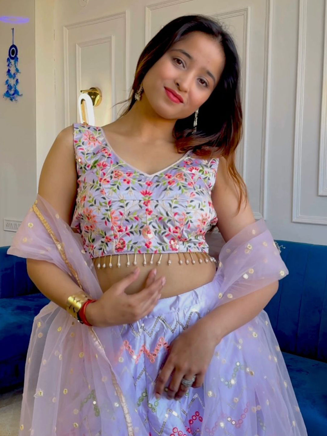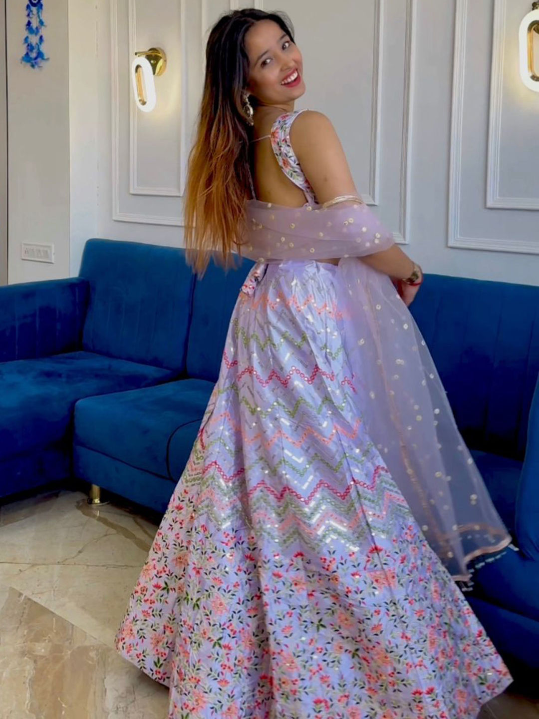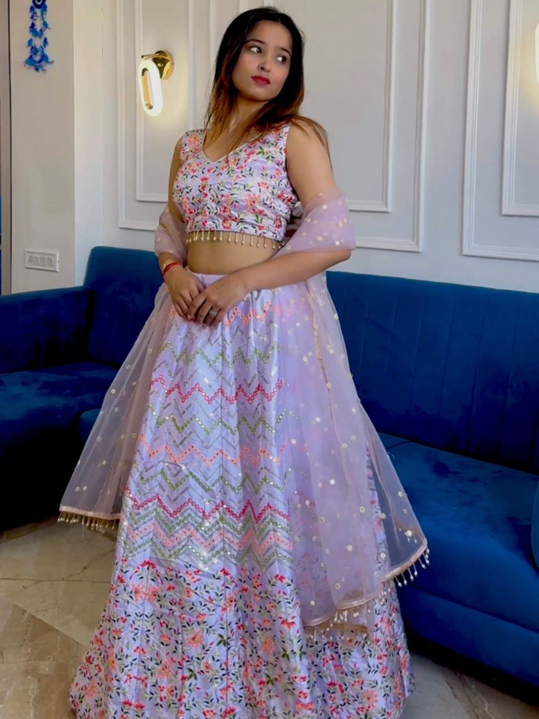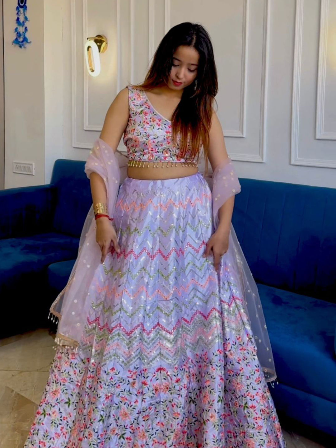 Blue color Lehenga in Satin Silk fabric with Embroidered, Sequence work