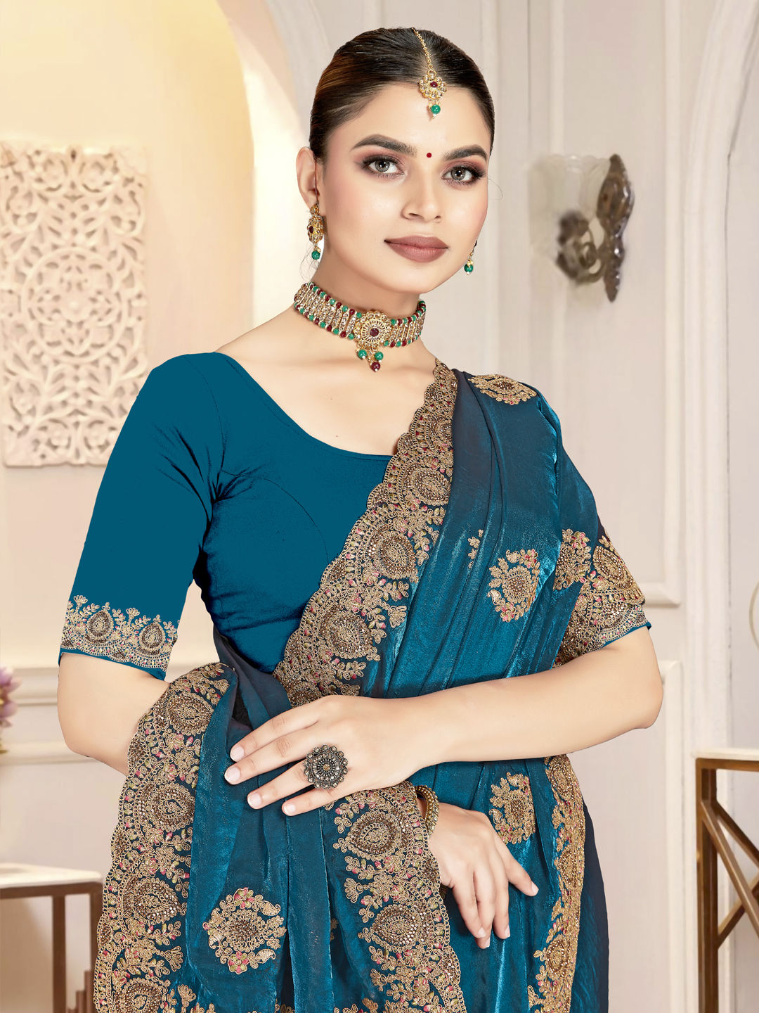 in Blue with Zircon work