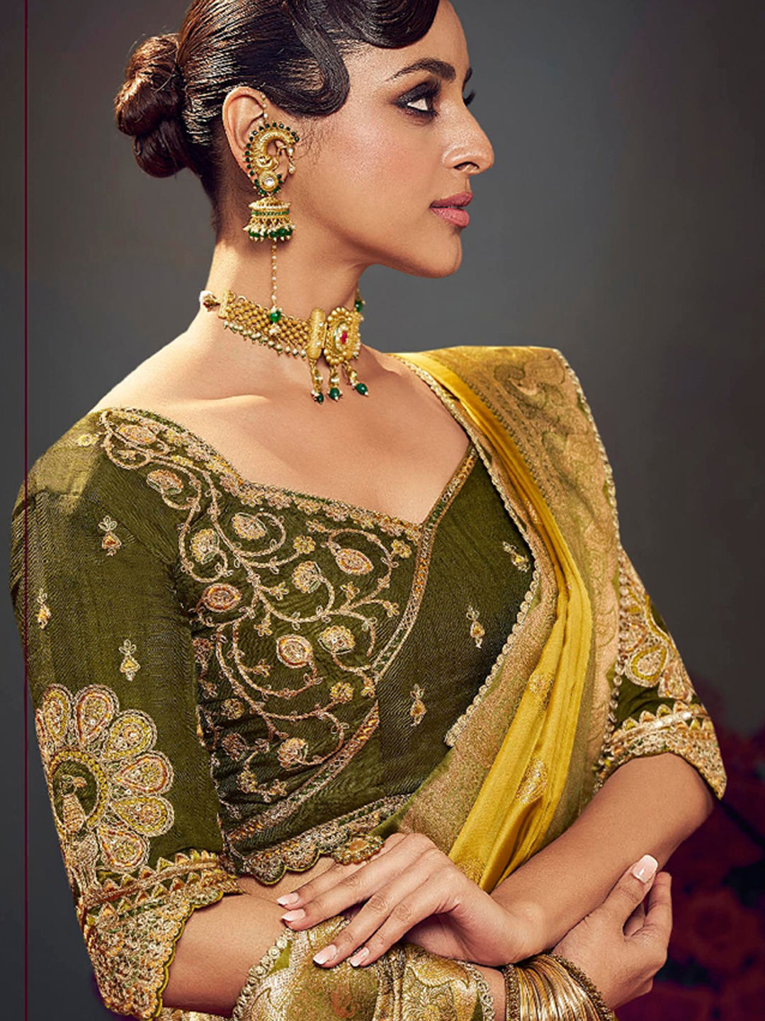 in Yellow with Weaving work