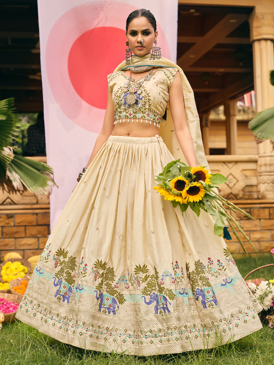 Beige and Brown color Lehenga in Shimmer fabric with Embroidered, Resham, Thread work