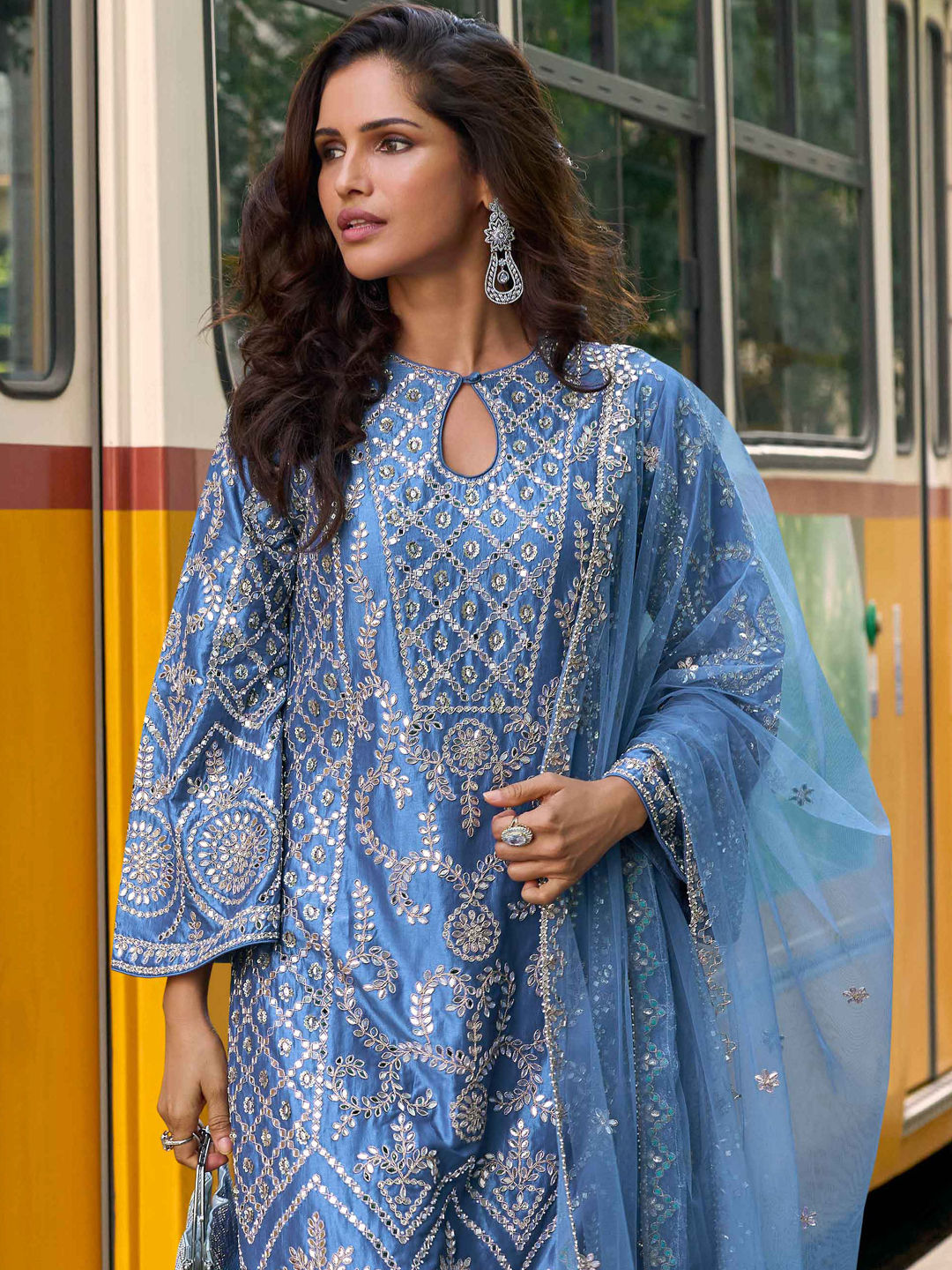 in Blue with Embroidered work