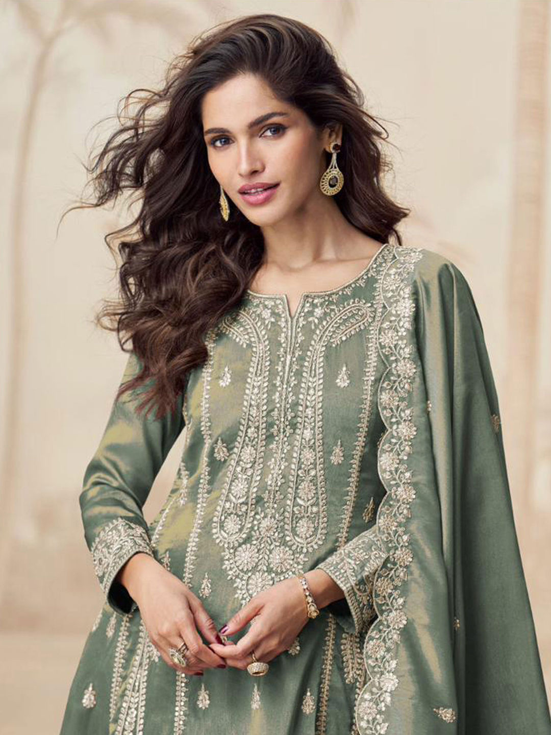 Green color Salwar Kameez in Shimmer fabric with Embroidered, Sequence, Zari work
