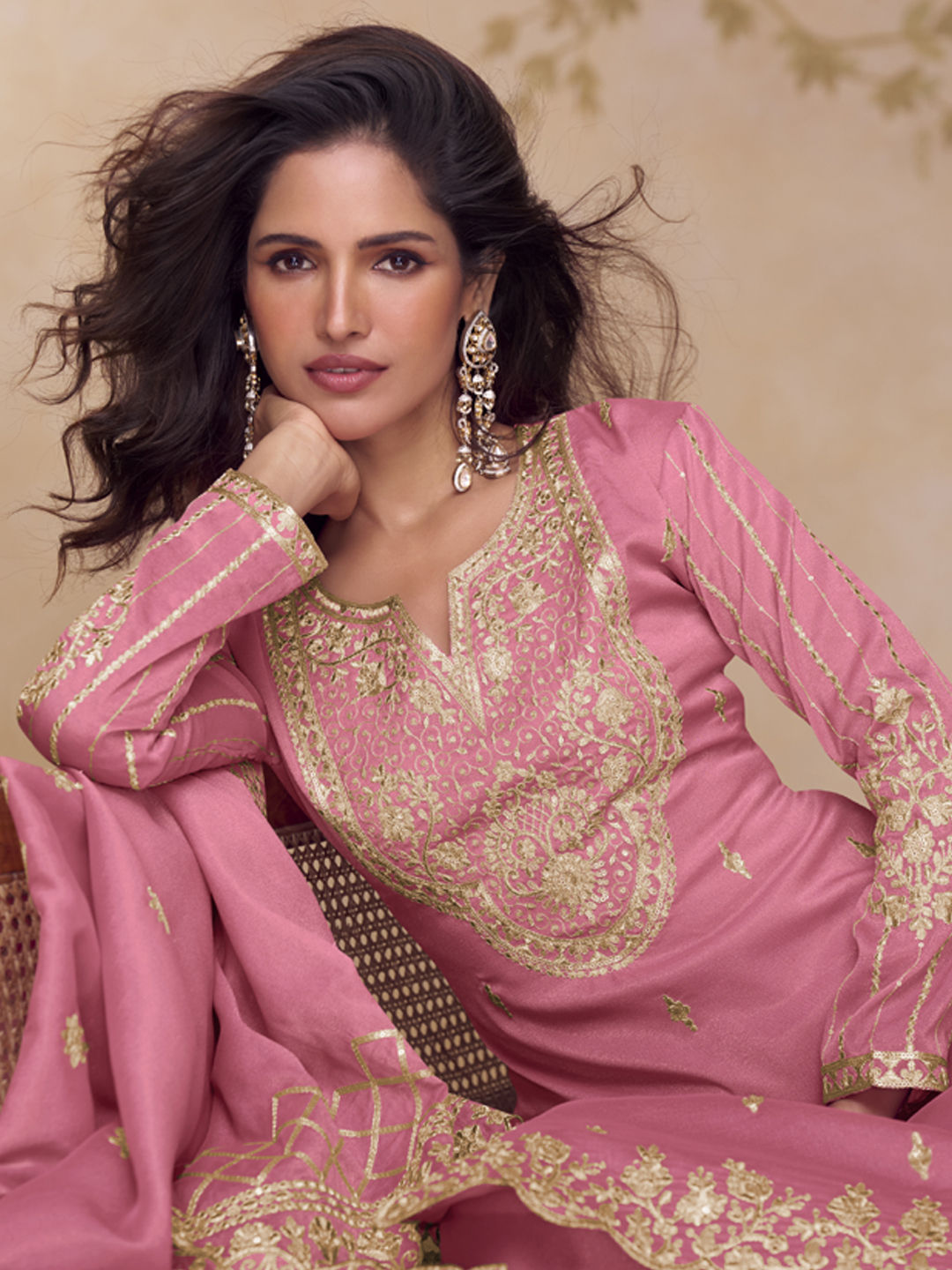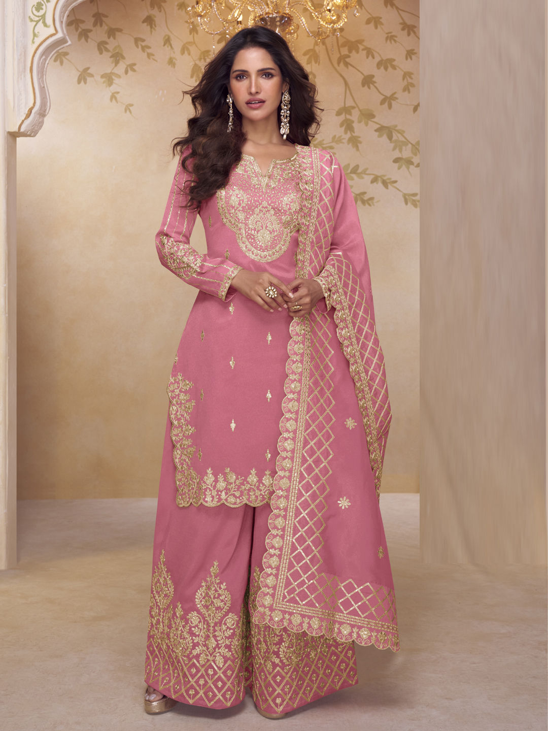Pink and Majenta color Salwar Kameez in Shimmer fabric with Embroidered, Sequence work