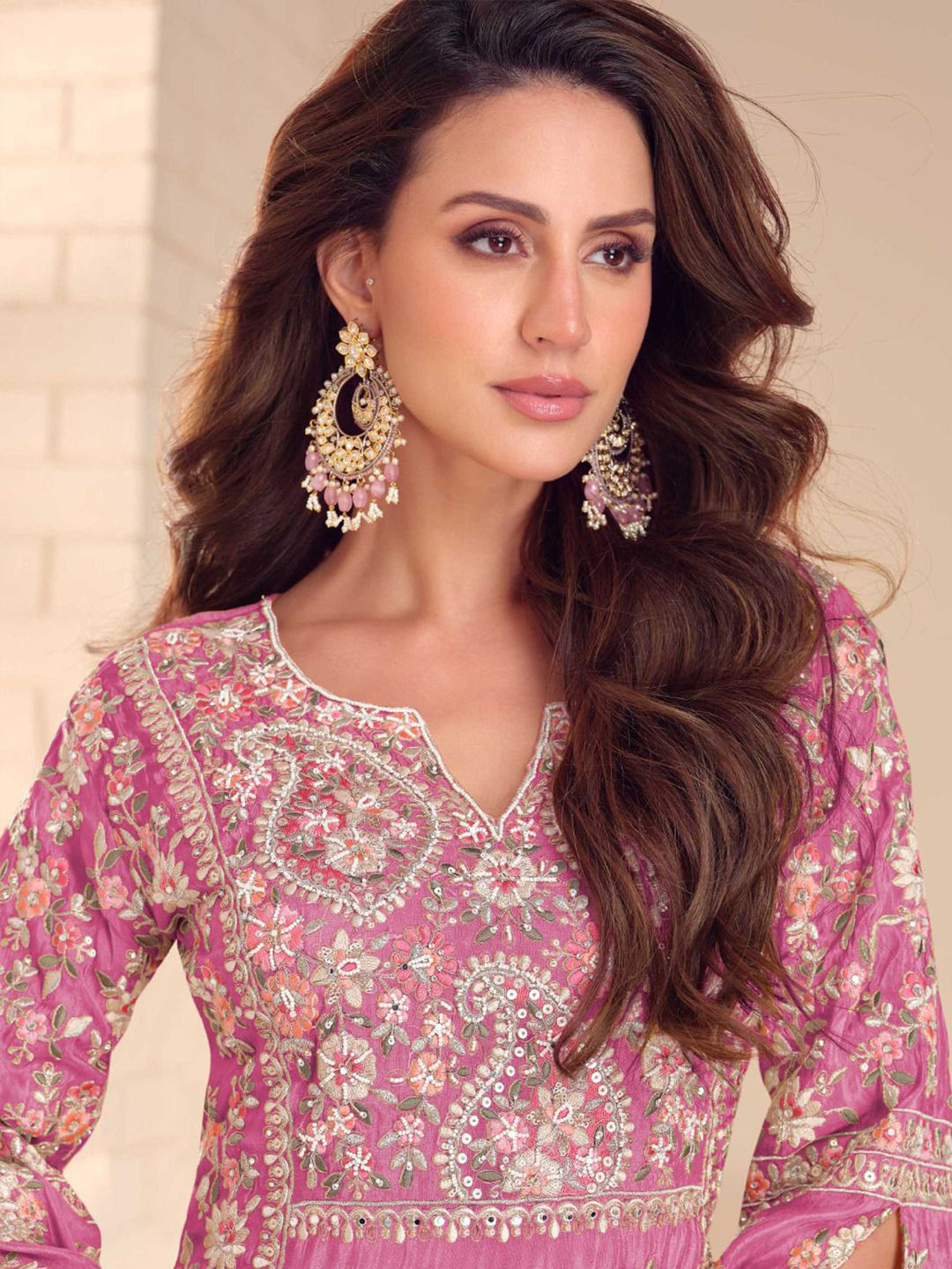 in Pink and Majenta with Thread work