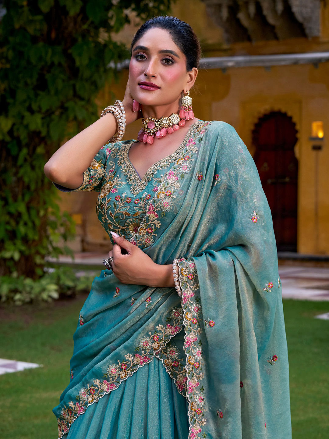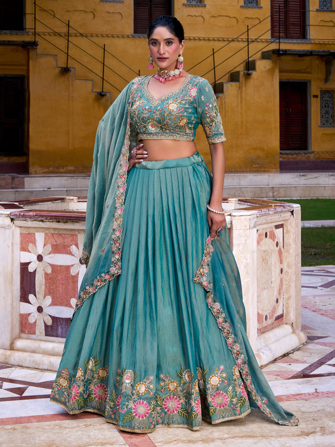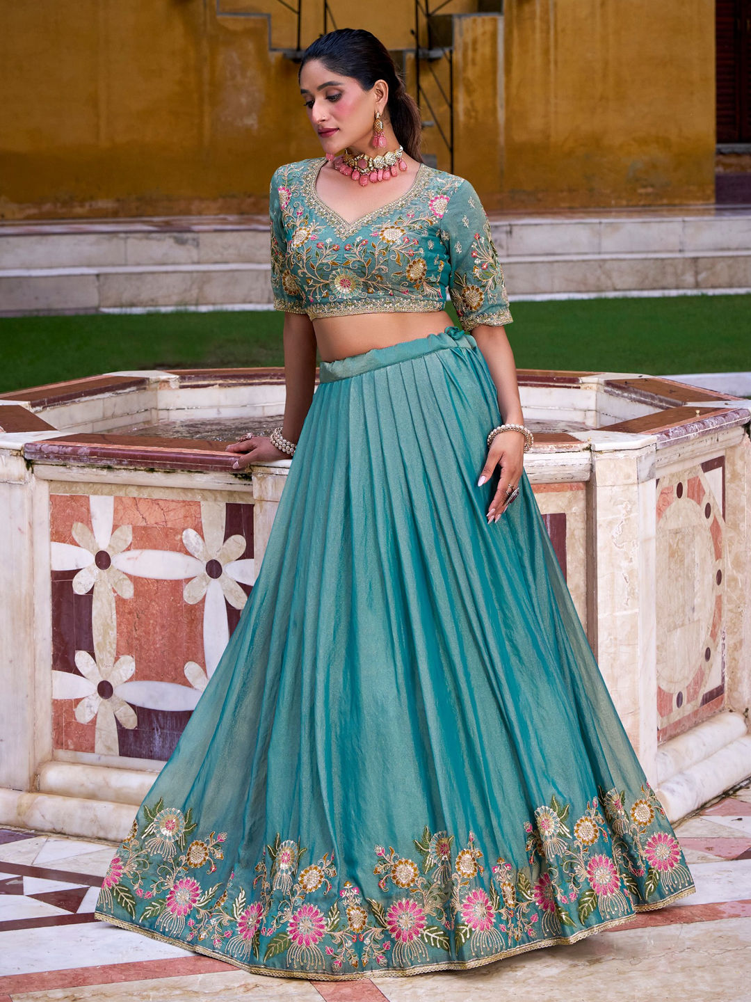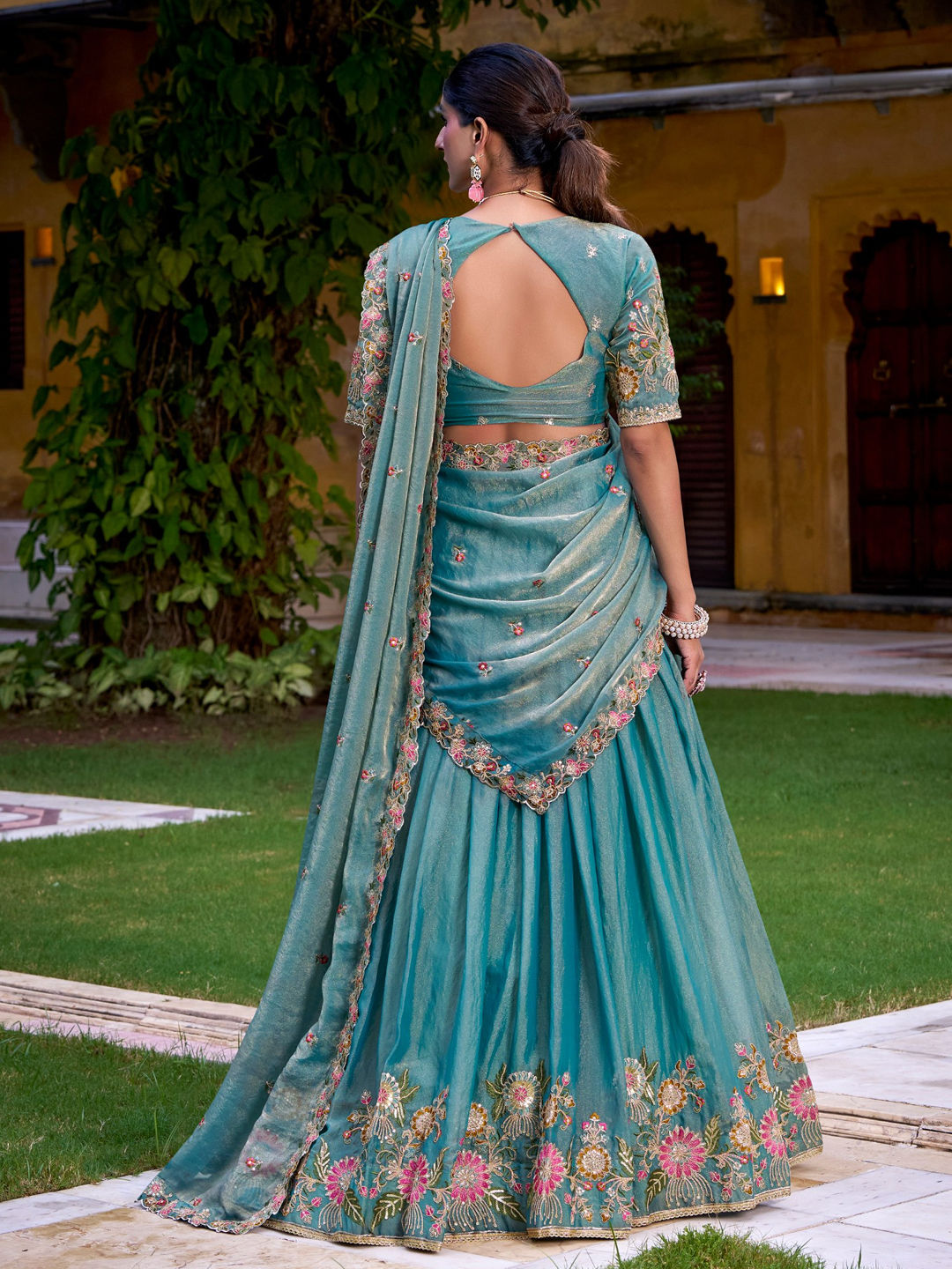 Blue color Lehenga in Shimmer fabric with Embroidered, Sequence, Thread work