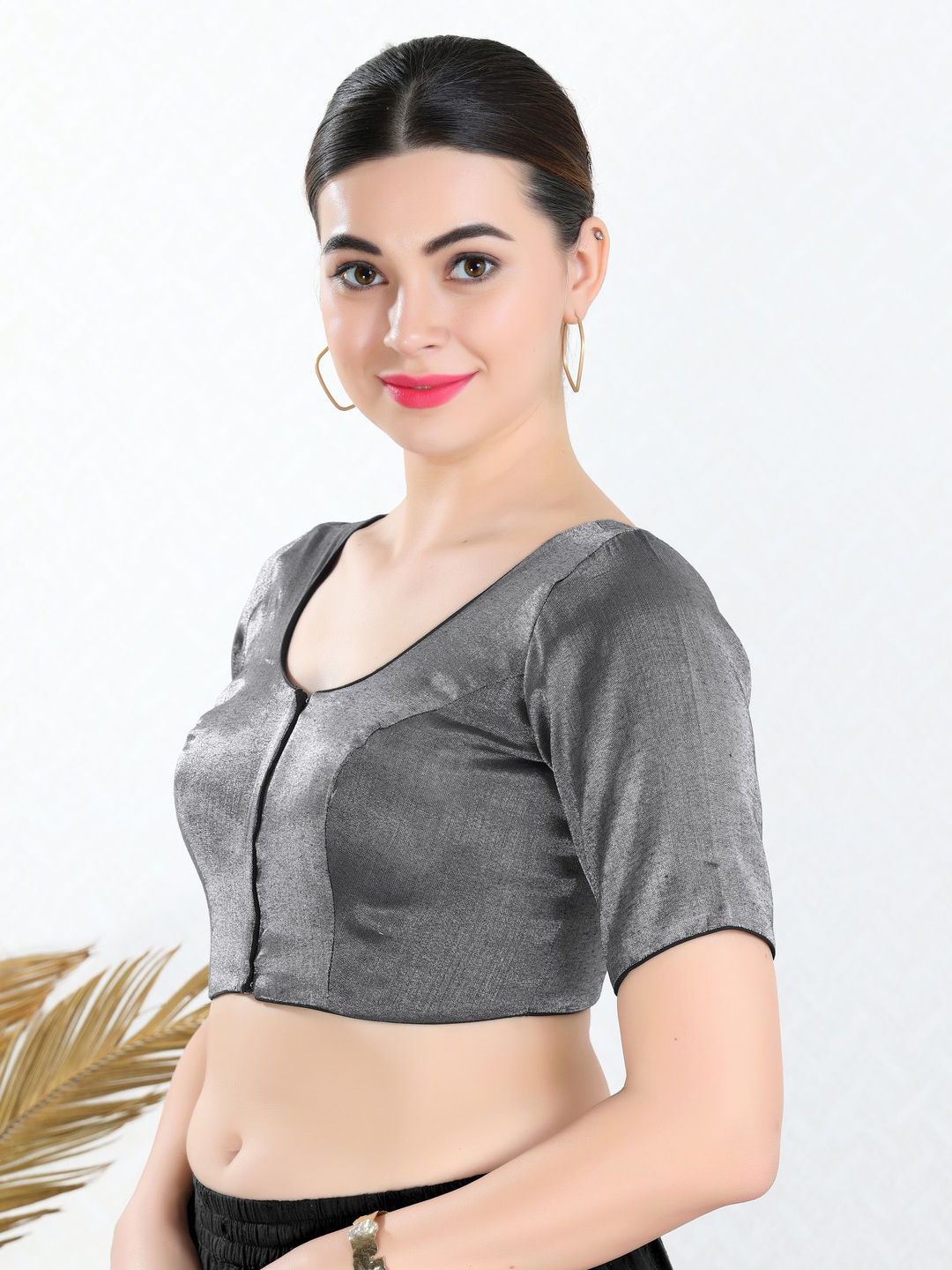 Black and Grey color Blouse in Shimmer fabric with Thread work