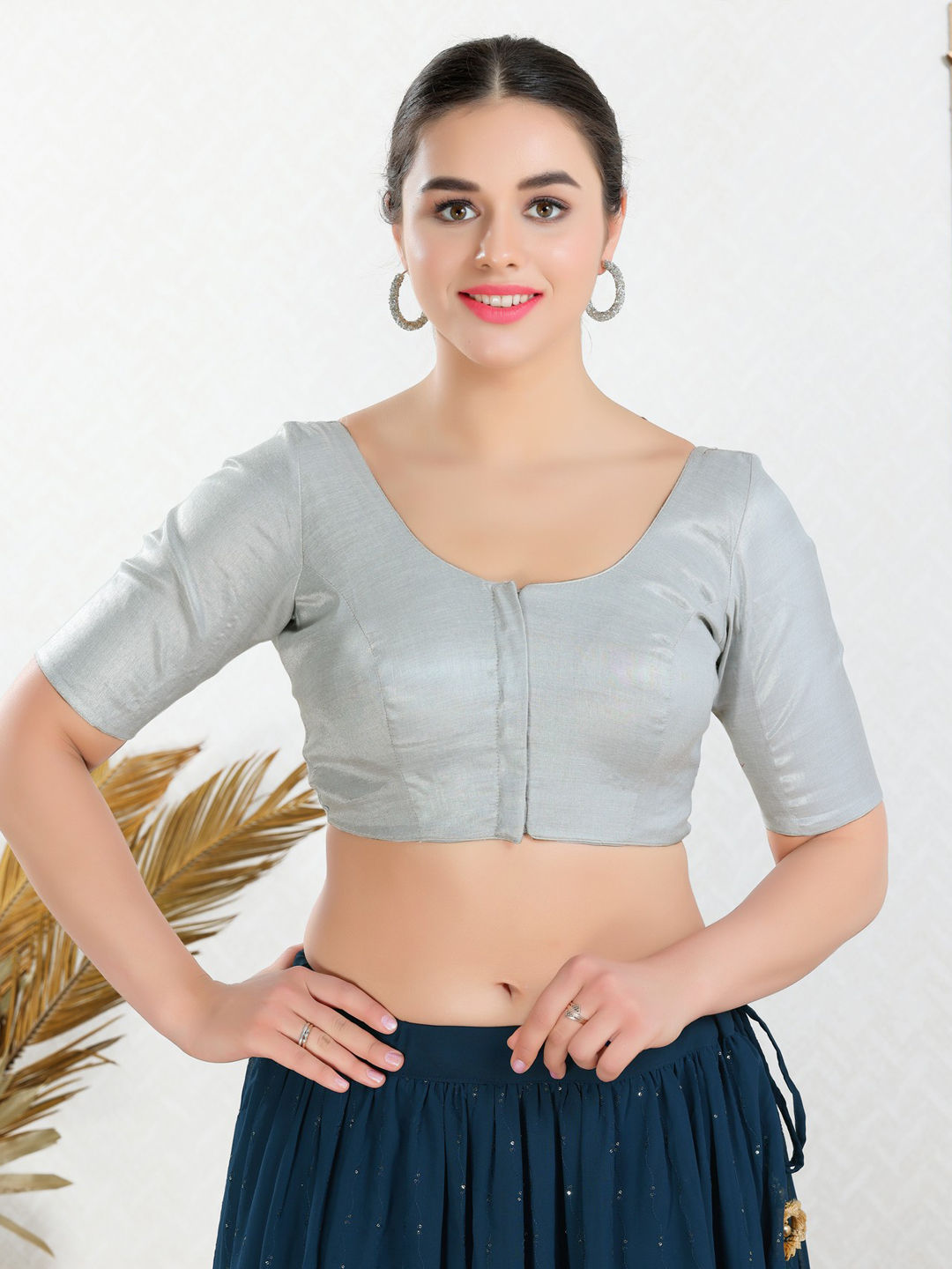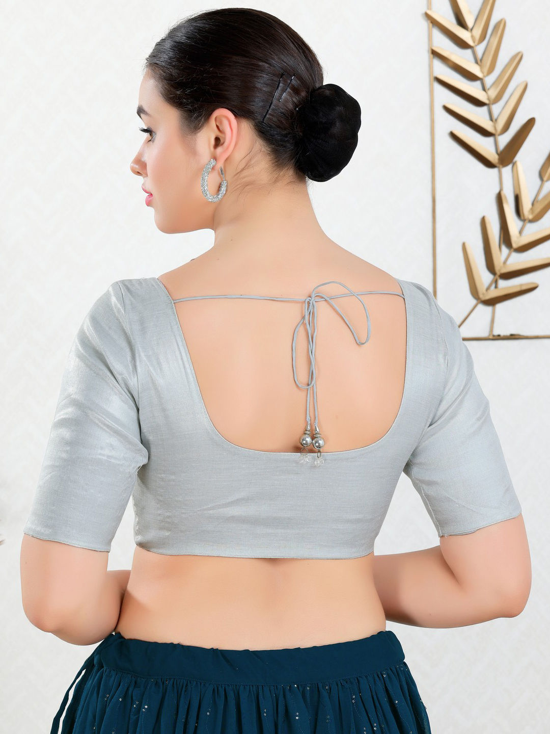 Shimmer Party Wear Blouse in Black and Grey with Thread work