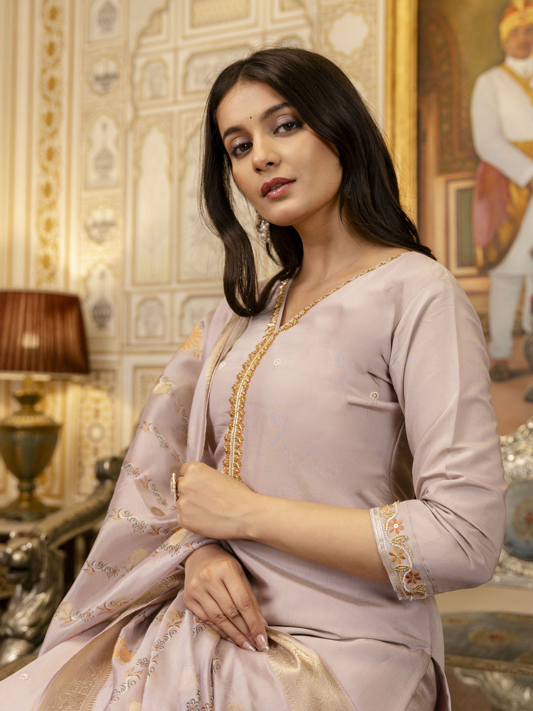 Beige and Brown color Salwar Kameez in Shimmer, Viscose fabric with Embroidered, Resham, Sequence, Thread work