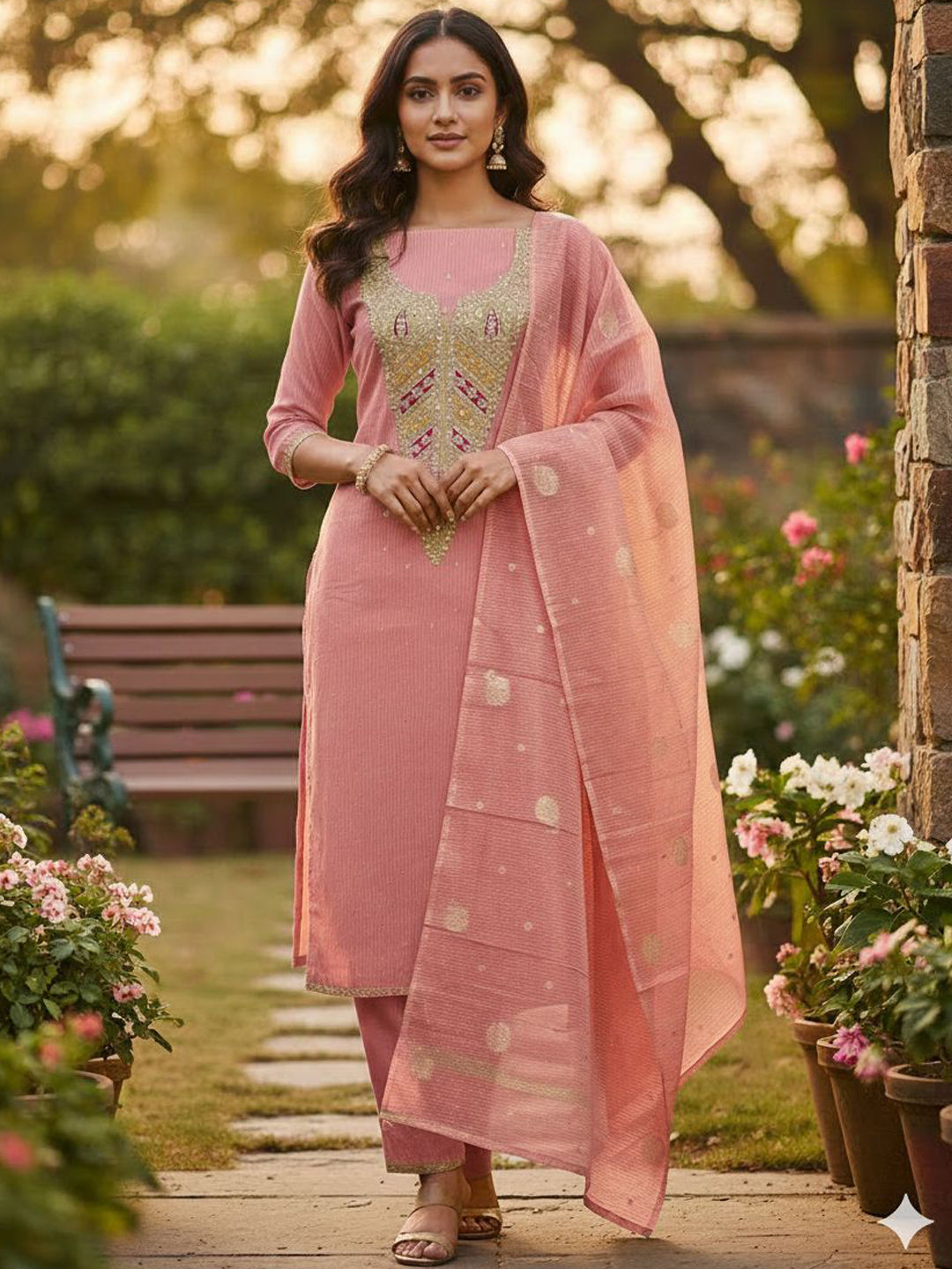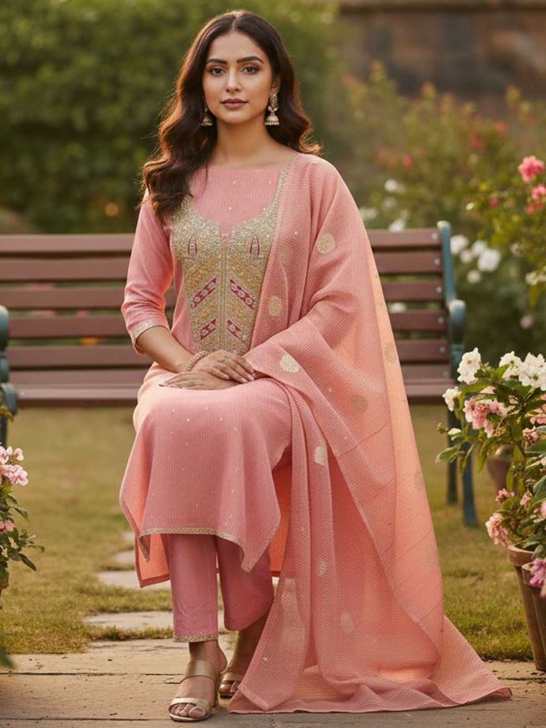 Pink and Majenta color Salwar Kameez in Shimmer fabric with Embroidered, Sequence work