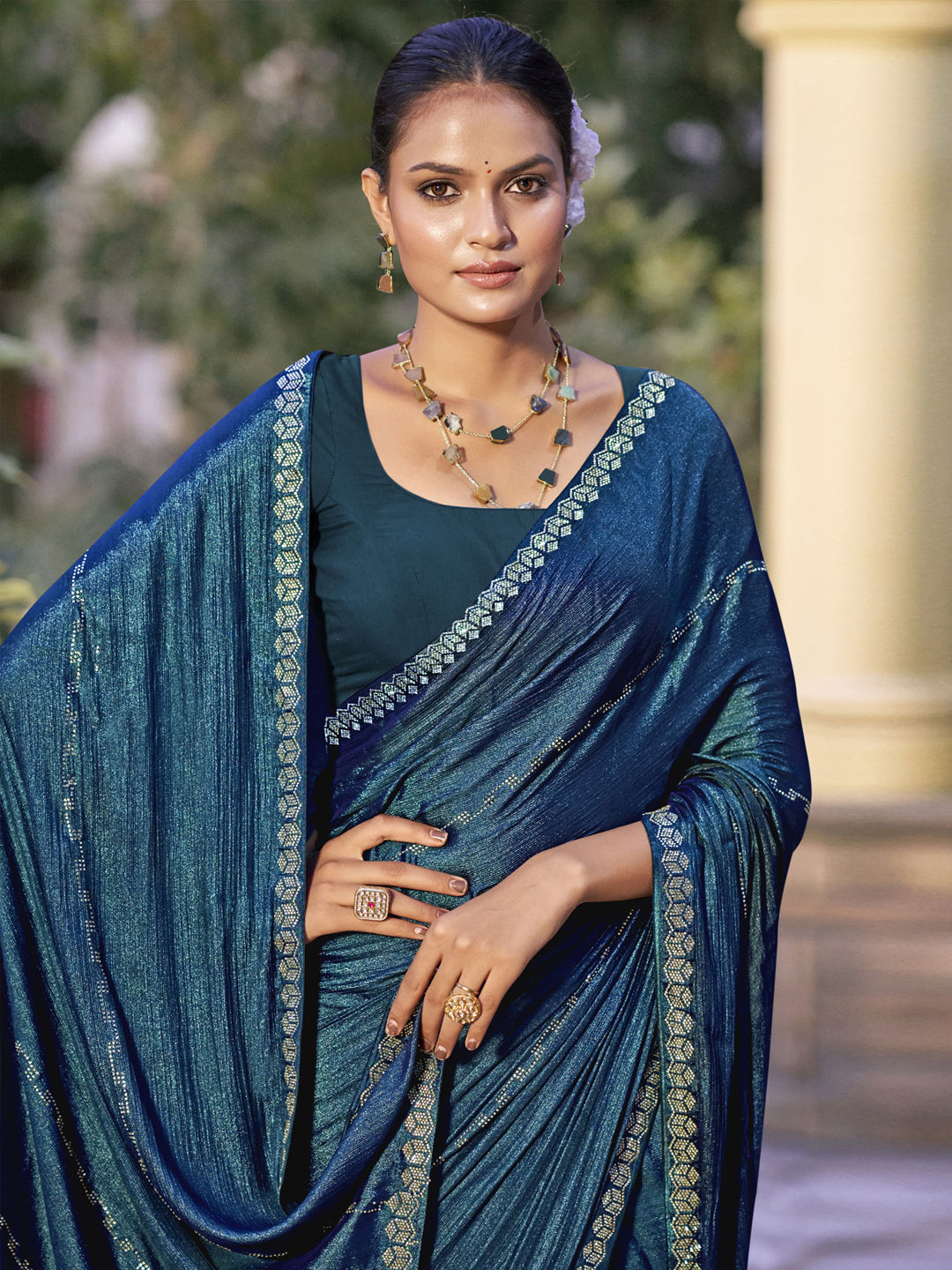 Blue color Saree in Shimmer fabric with Fancy Work work