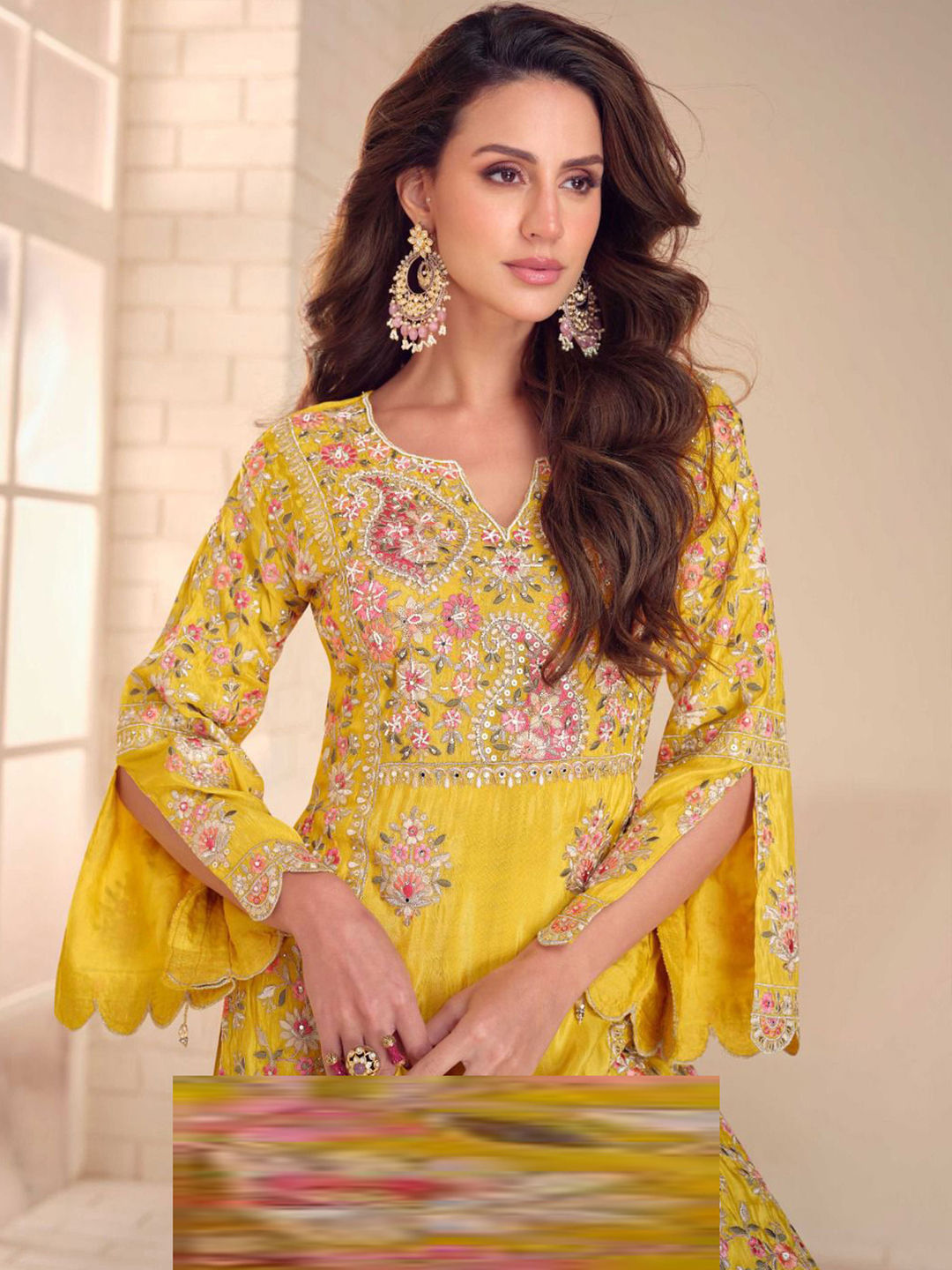 Yellow color Salwar Kameez in Shimmer fabric with Embroidered, Resham, Sequence, Thread, Zari work