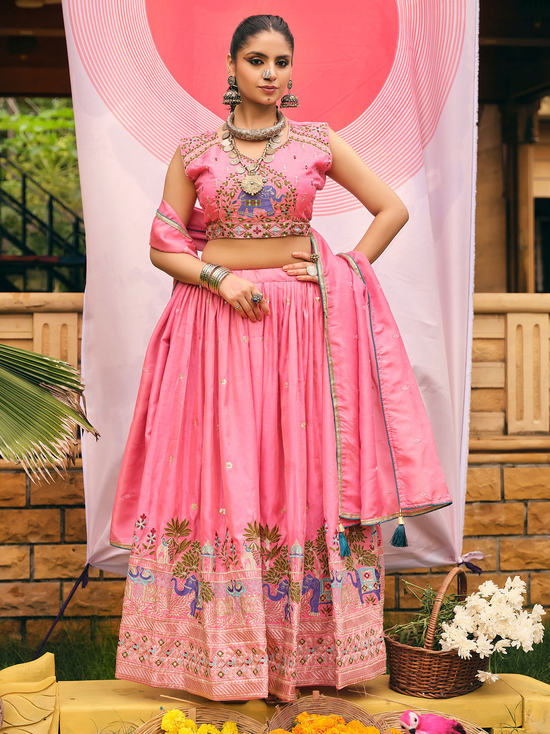 Pink and Majenta color Lehenga in Shimmer fabric with Embroidered, Resham, Thread work