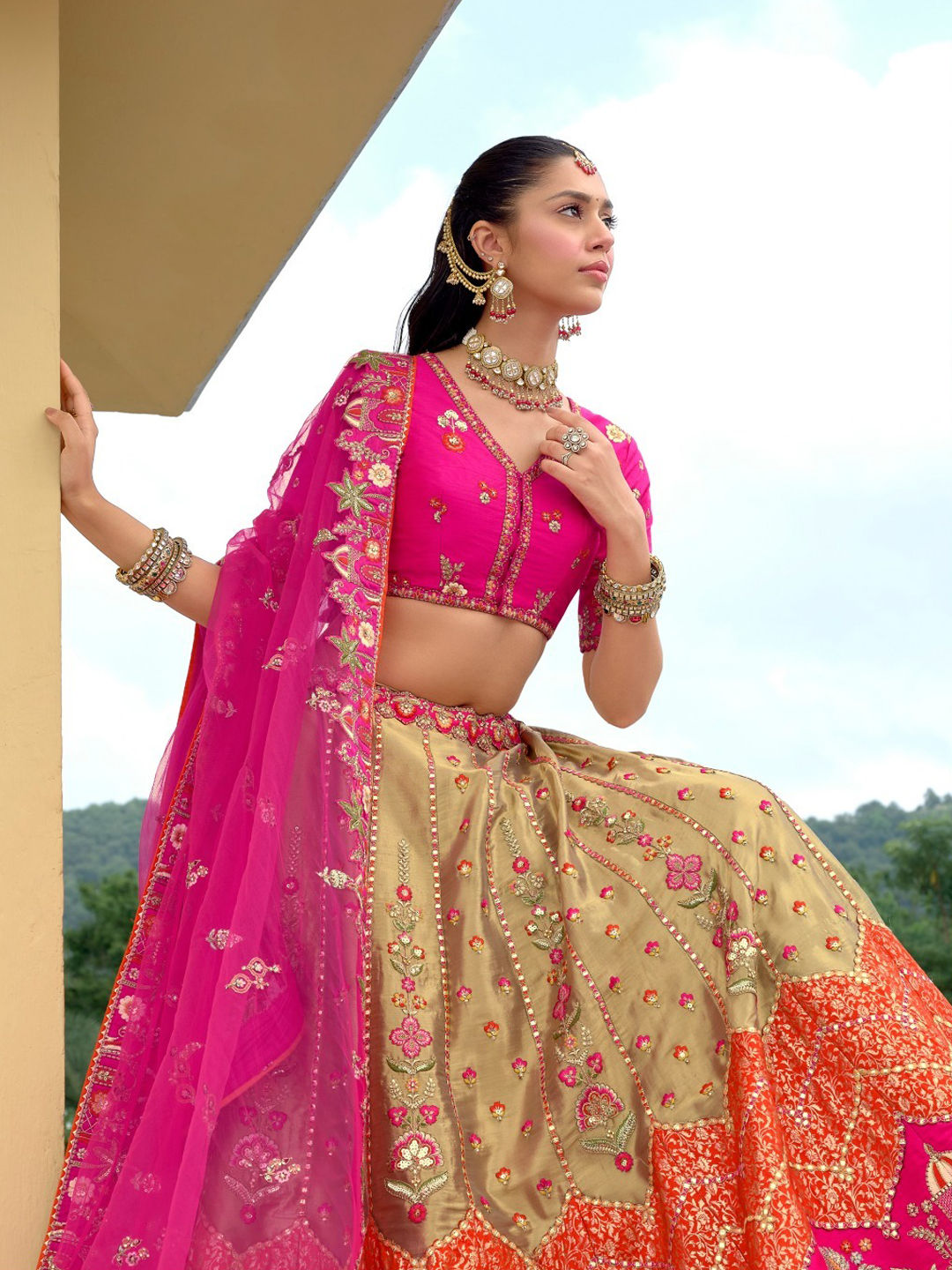 Silk Wedding Lehenga in Pink and Majenta with Mirror work