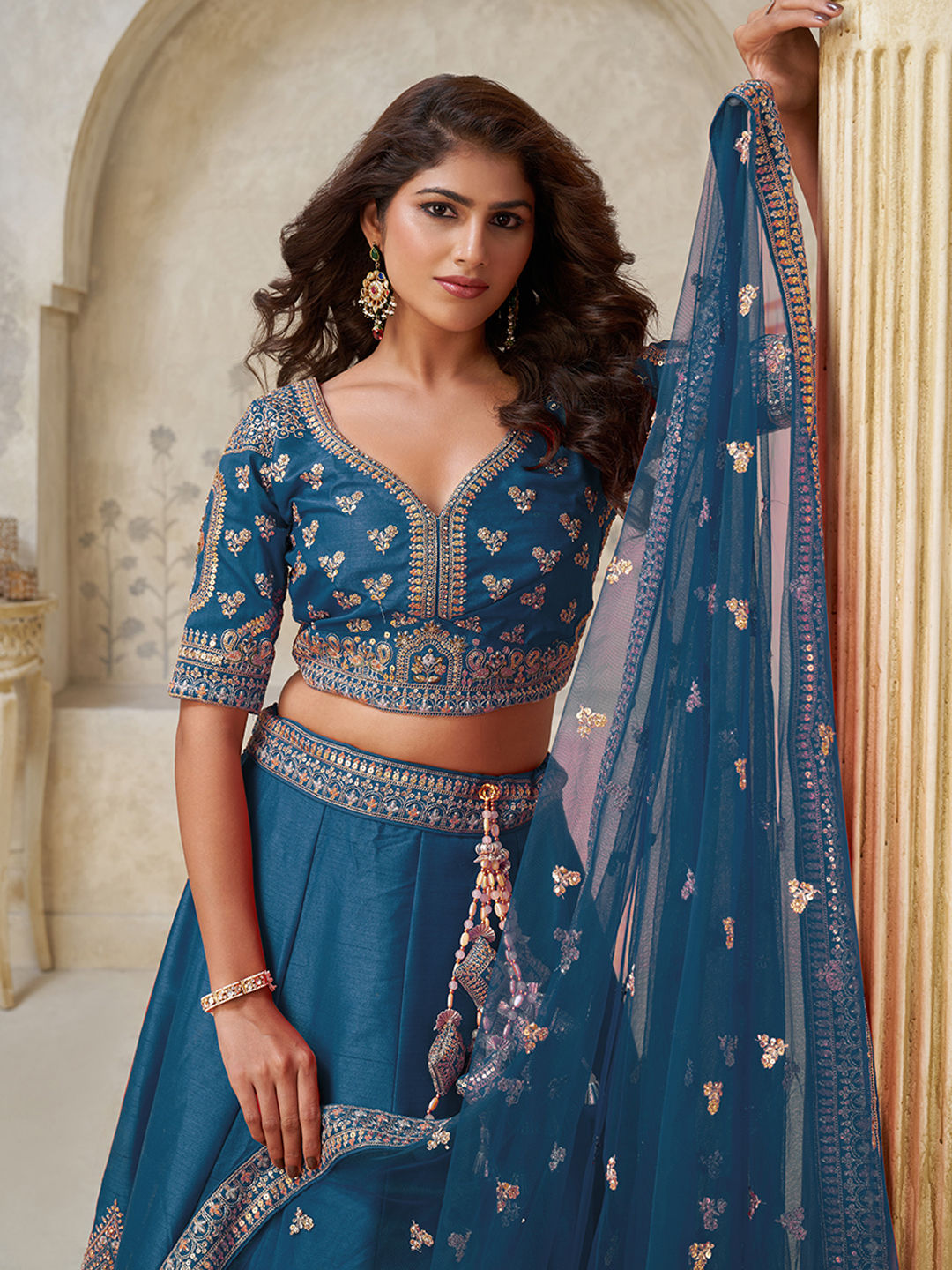 Blue color Lehenga in Silk fabric with Embroidered, Sequence, Thread, Zari work