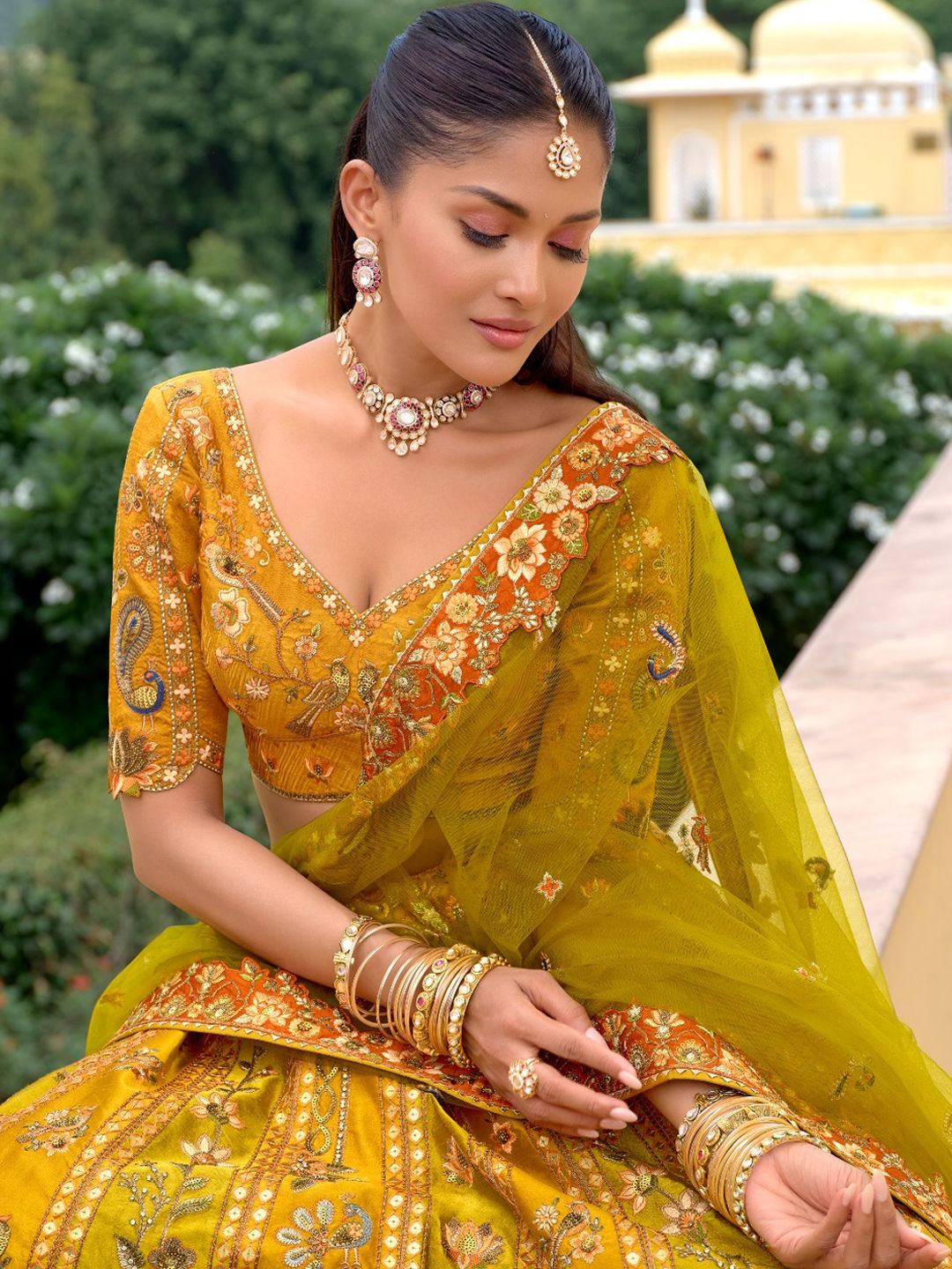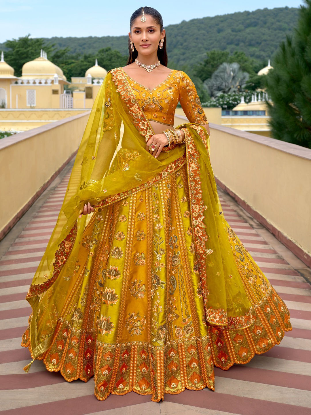Silk Wedding Lehenga in Yellow with Stone work