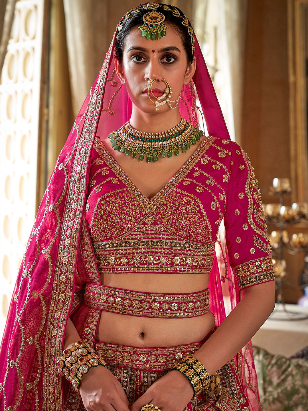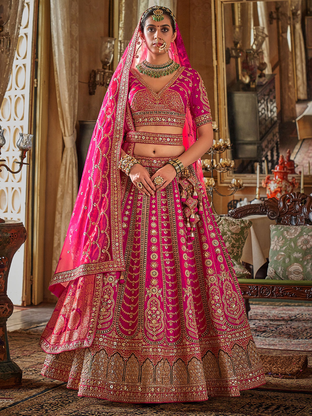 Silk Wedding Lehenga in Pink and Majenta with Weaving work