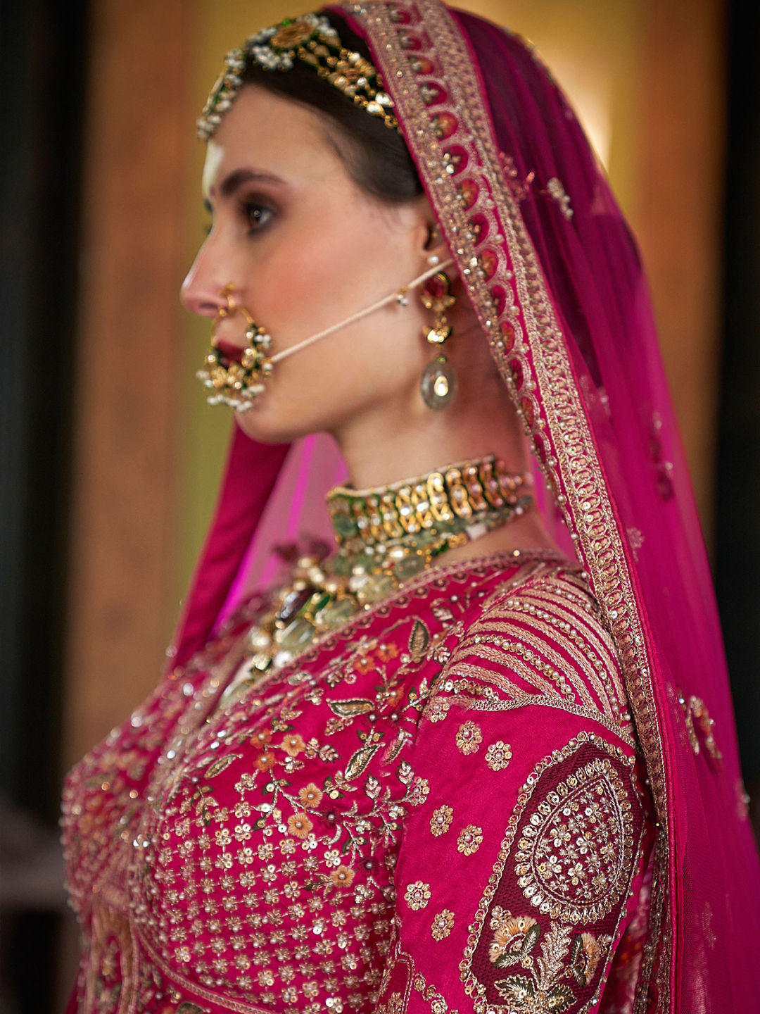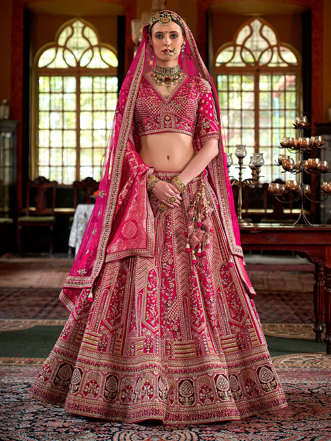 Silk Wedding Lehenga in Red and Maroon with Zari work