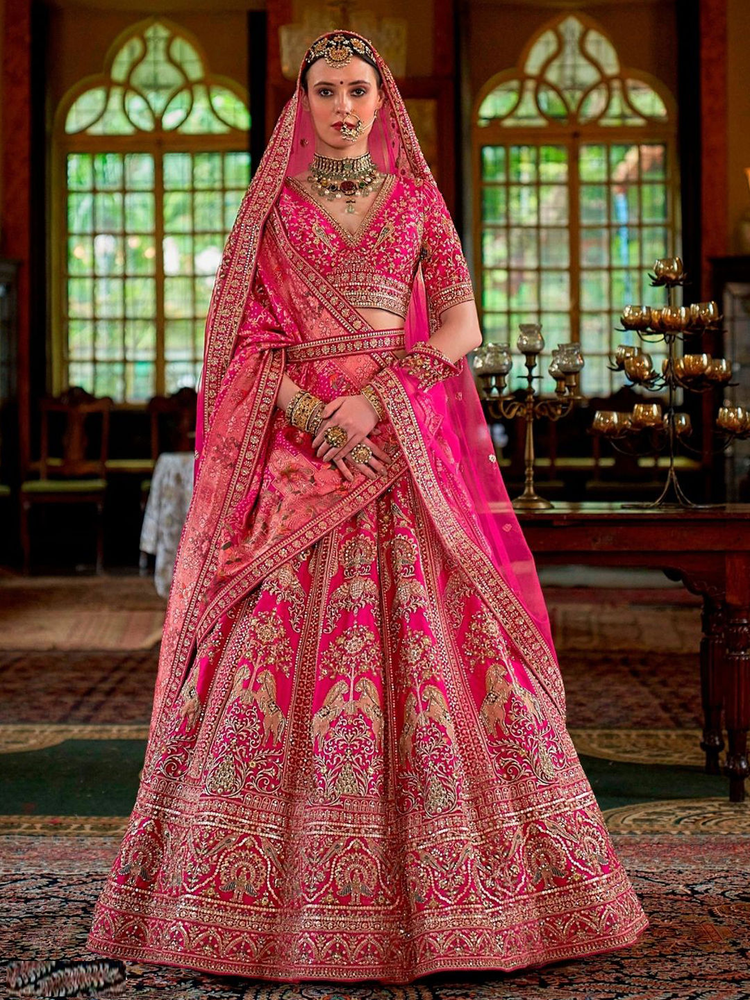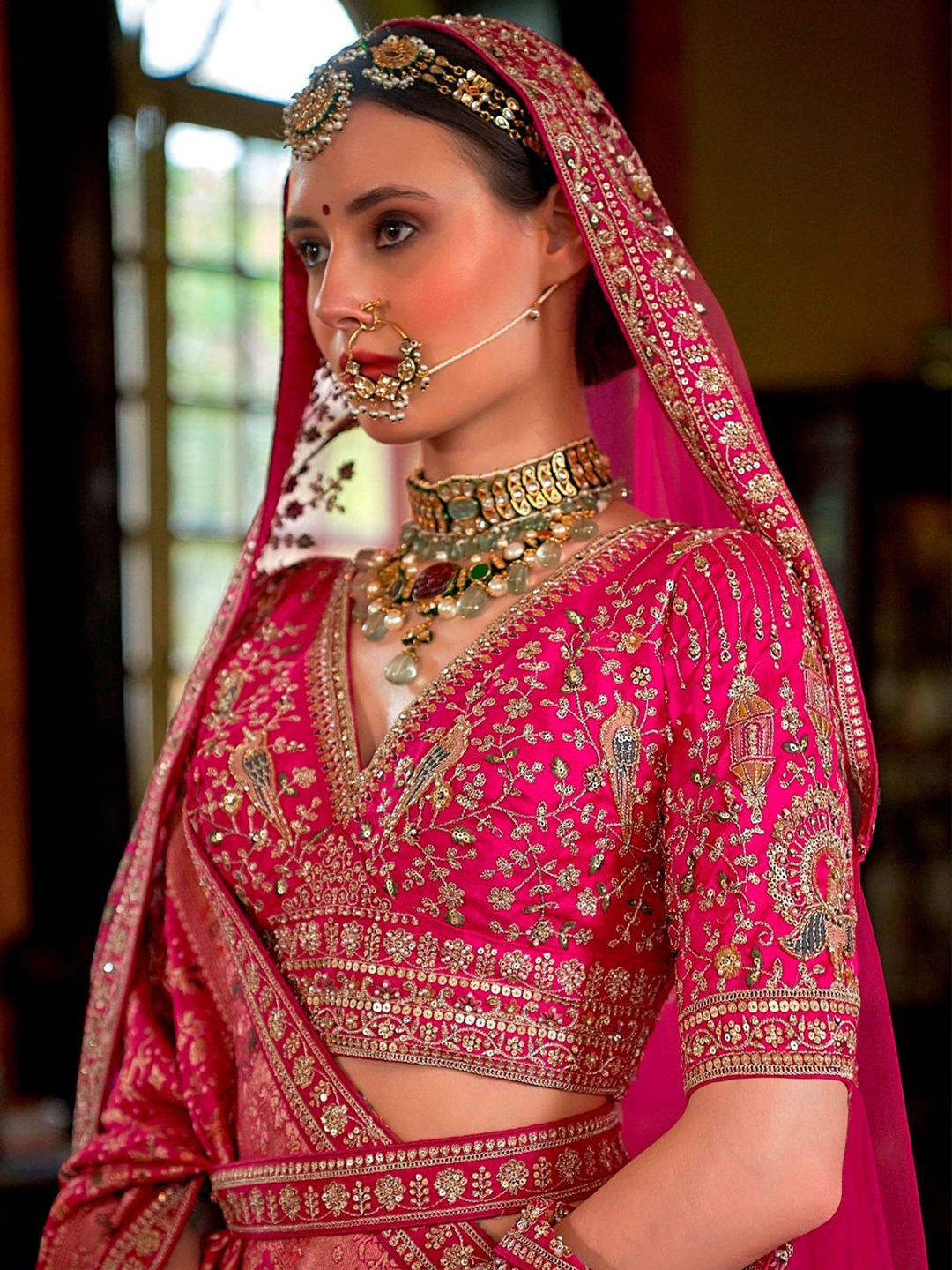 Silk Wedding Lehenga in Pink and Majenta with Sequence work