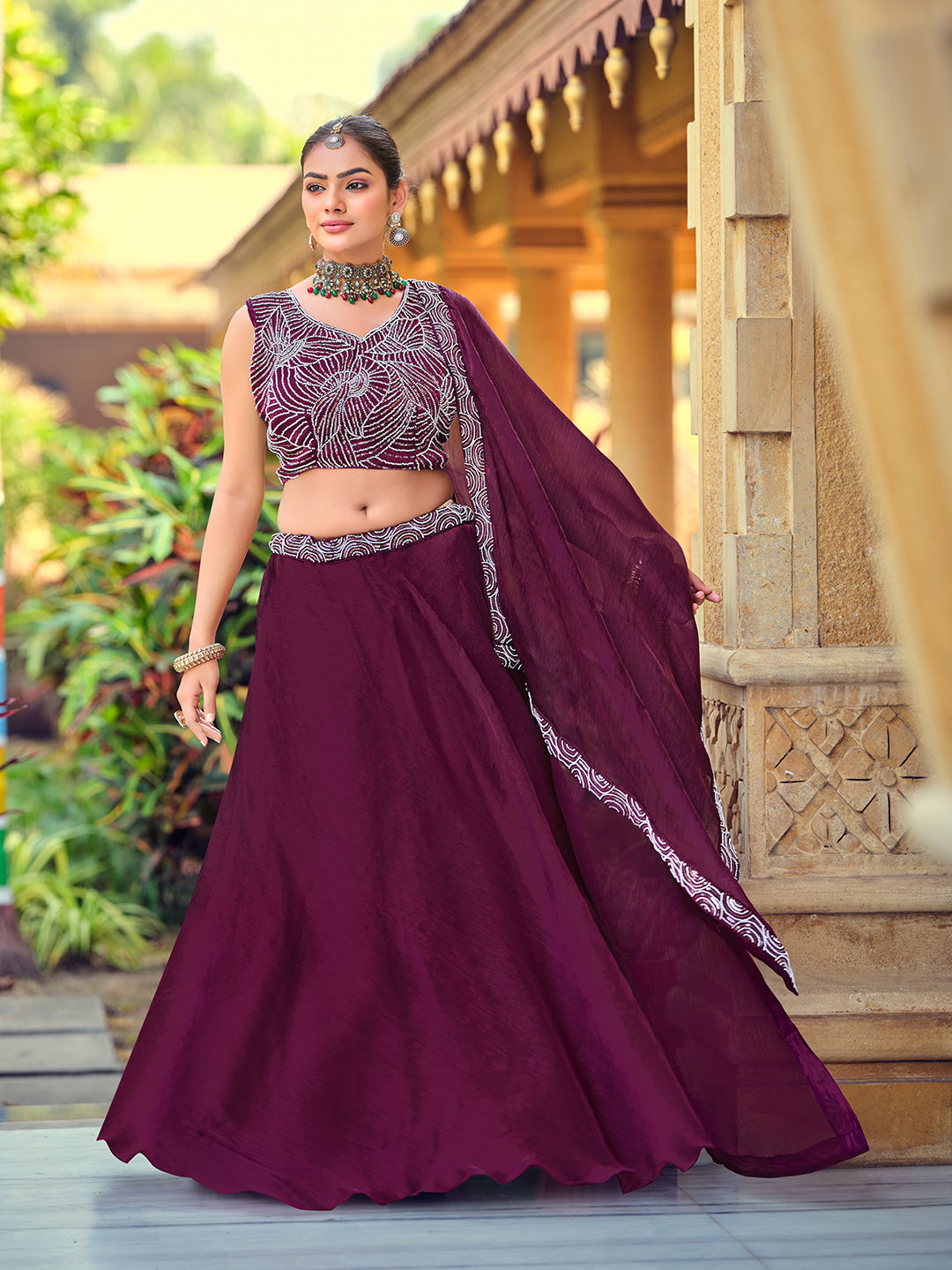 Purple and Violet color Lehenga in Silk fabric with Embroidered, Printed work