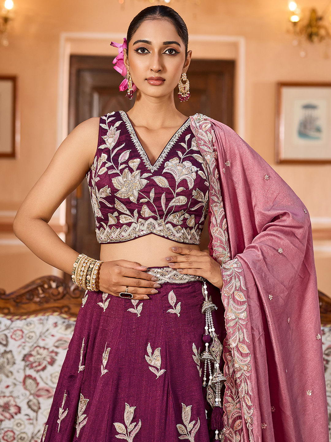 Purple and Violet color Lehenga in Silk fabric with Embroidered, Sequence work