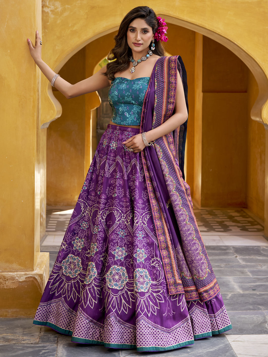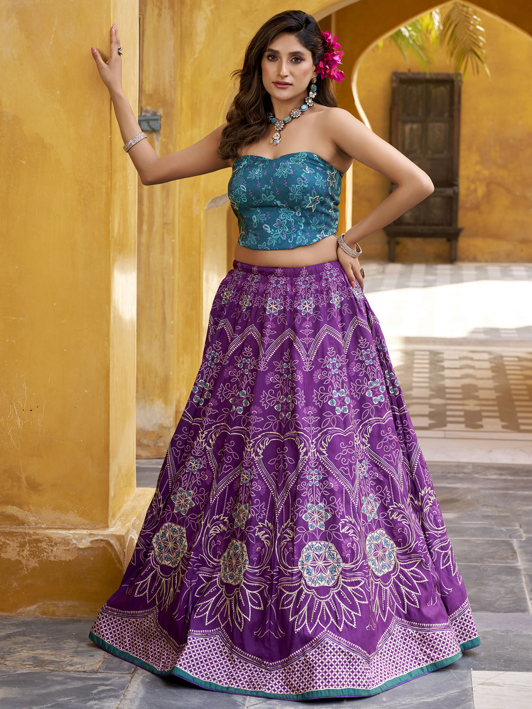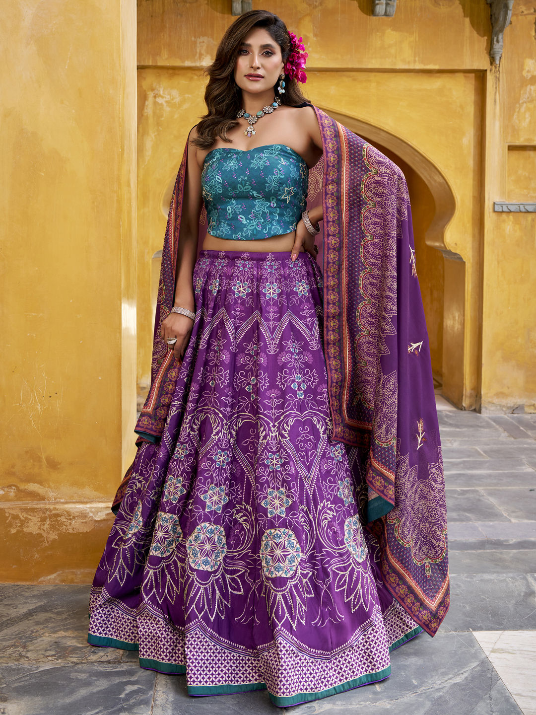 Purple and Violet color Lehenga in Silk fabric with Bugle Beads, Gota Patti, Lace, Printed work