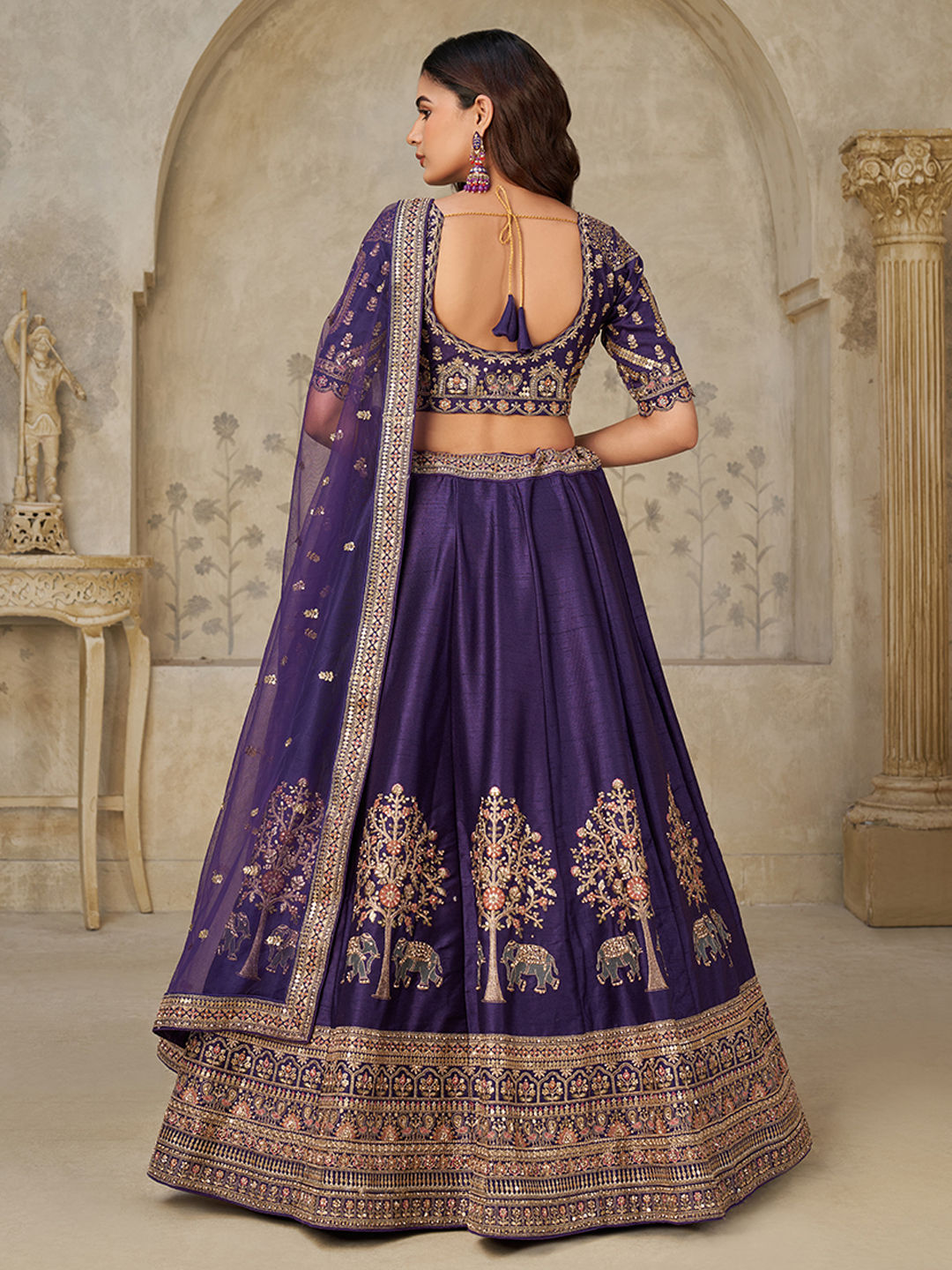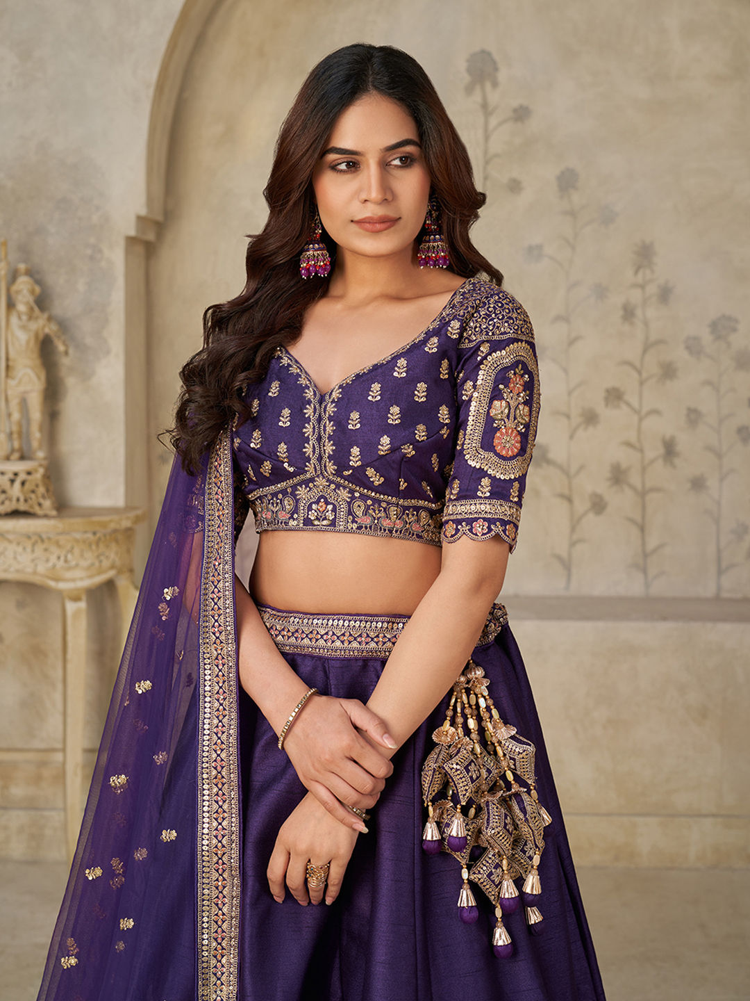 Purple and Violet color Lehenga in Silk fabric with Embroidered, Sequence, Thread, Zari work