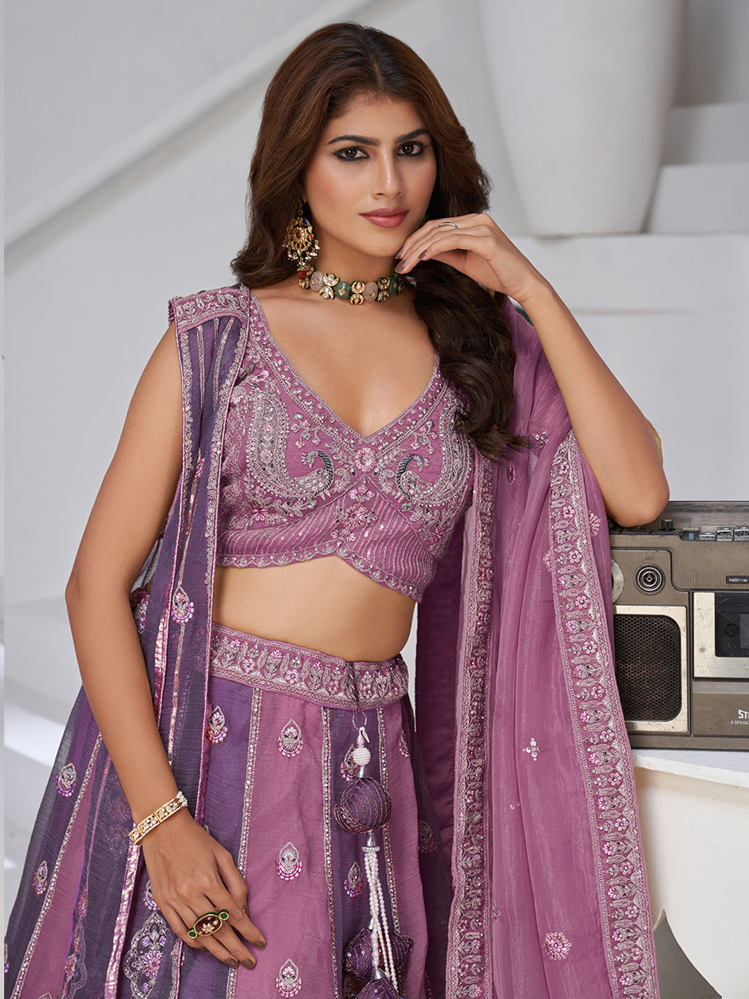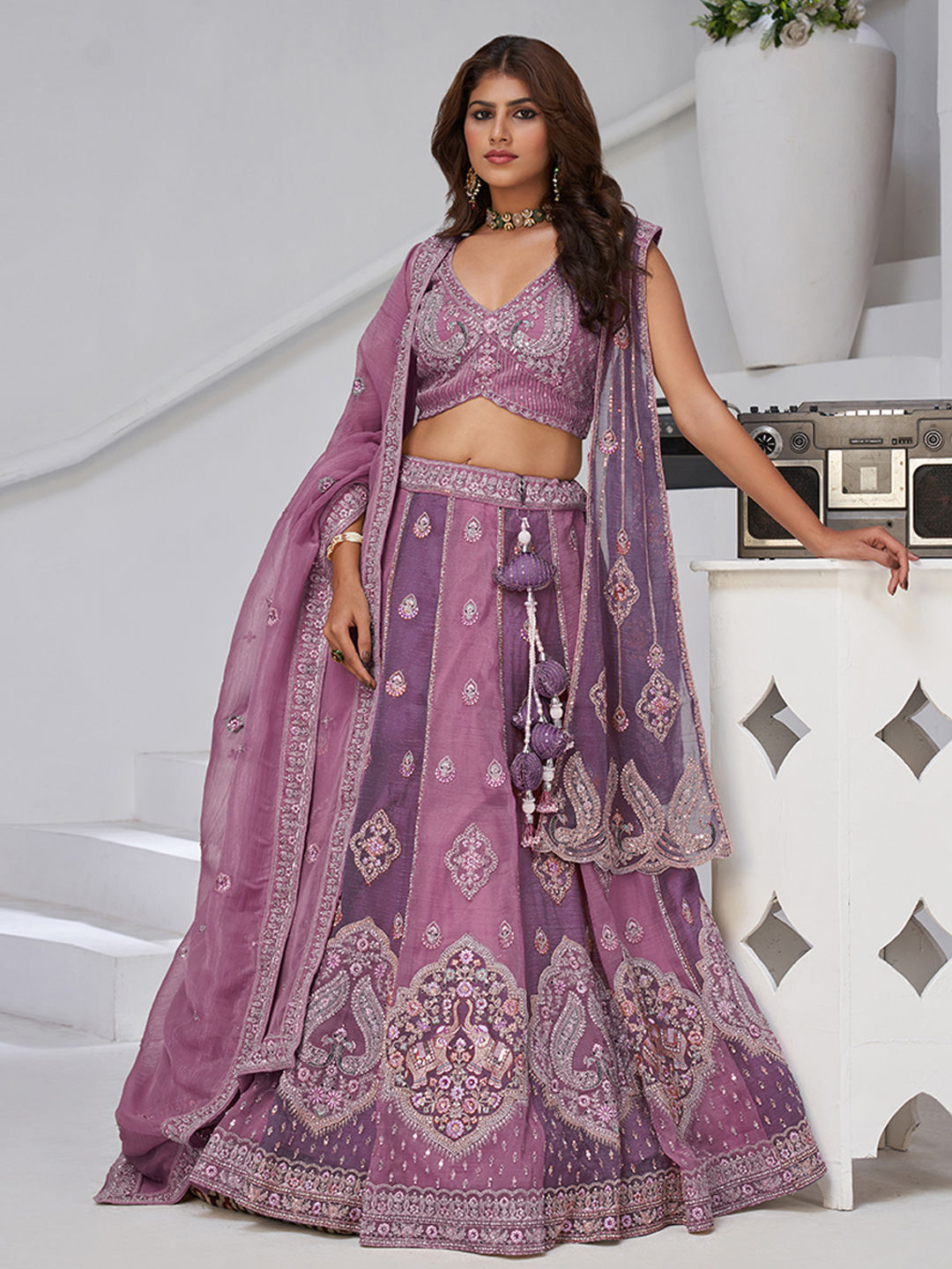 Purple and Violet color Lehenga in Silk fabric with Embroidered, Sequence, Thread, Zari work
