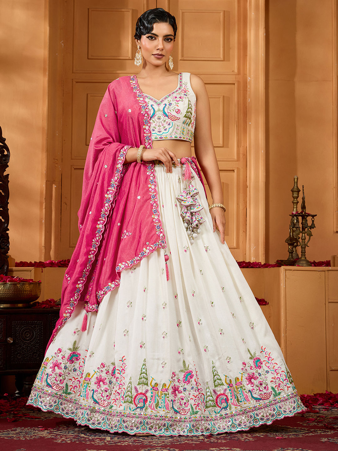 White and Off White color Lehenga in Silk fabric with Embroidered, Sequence, Stone, Thread work