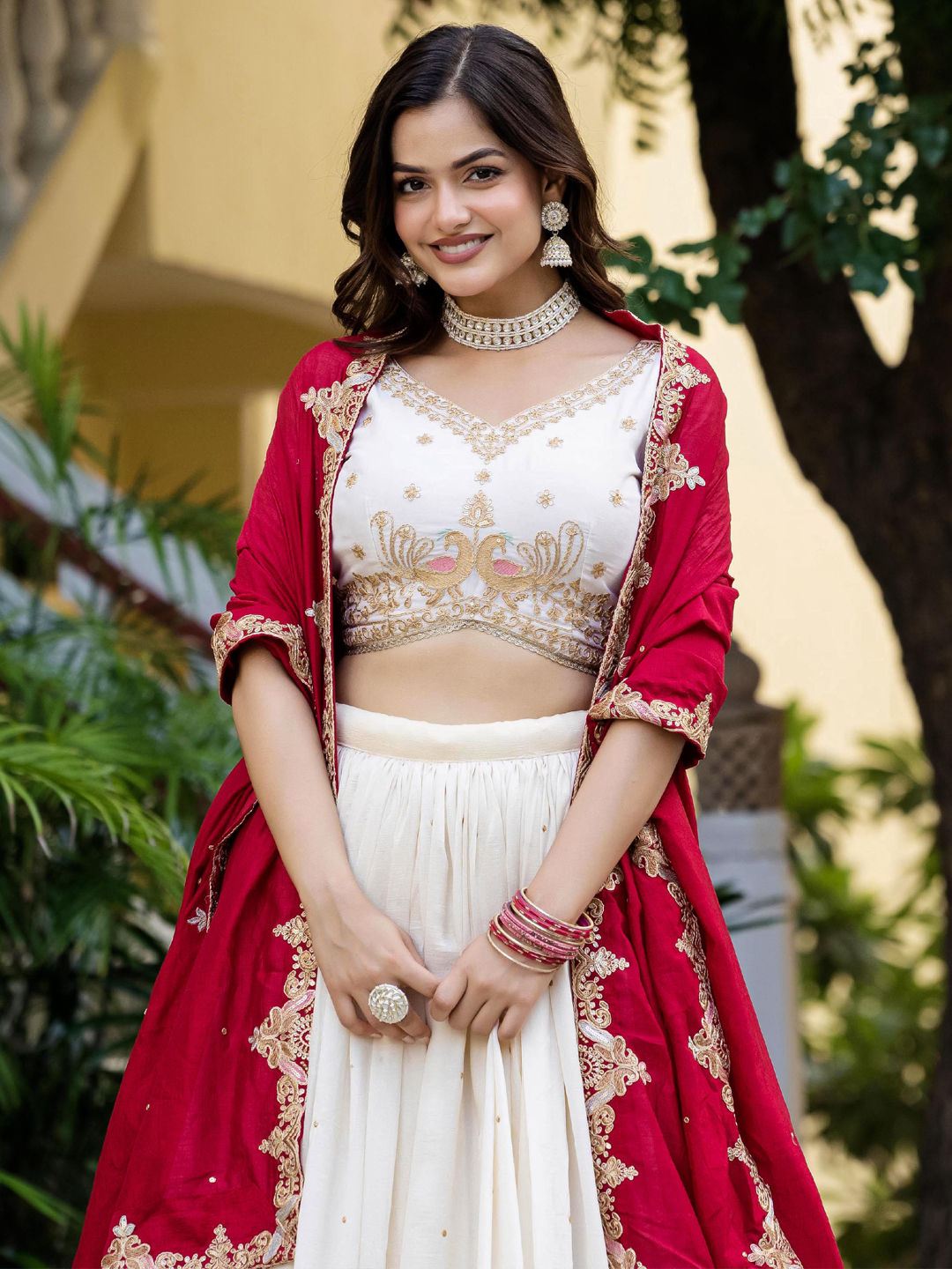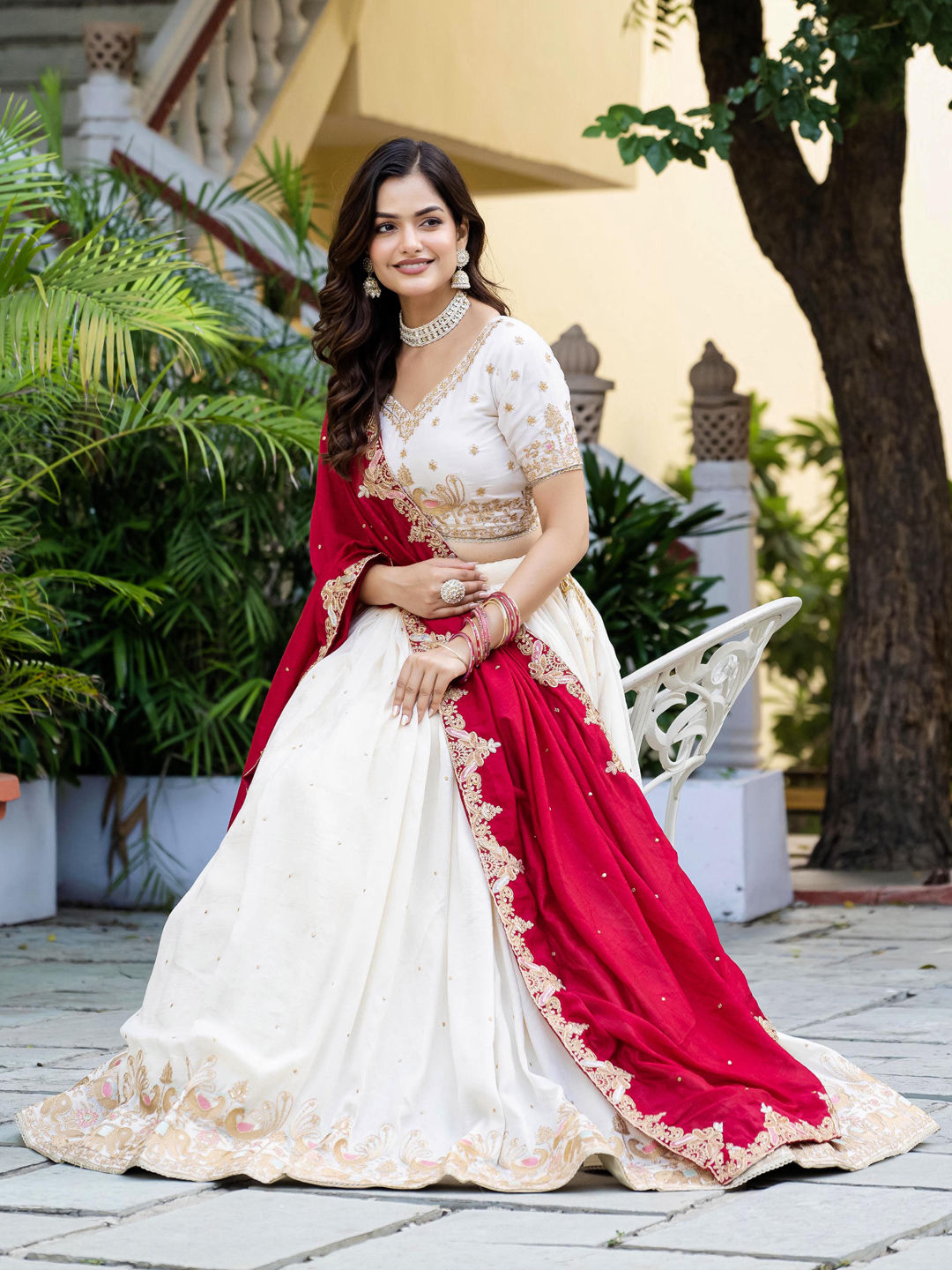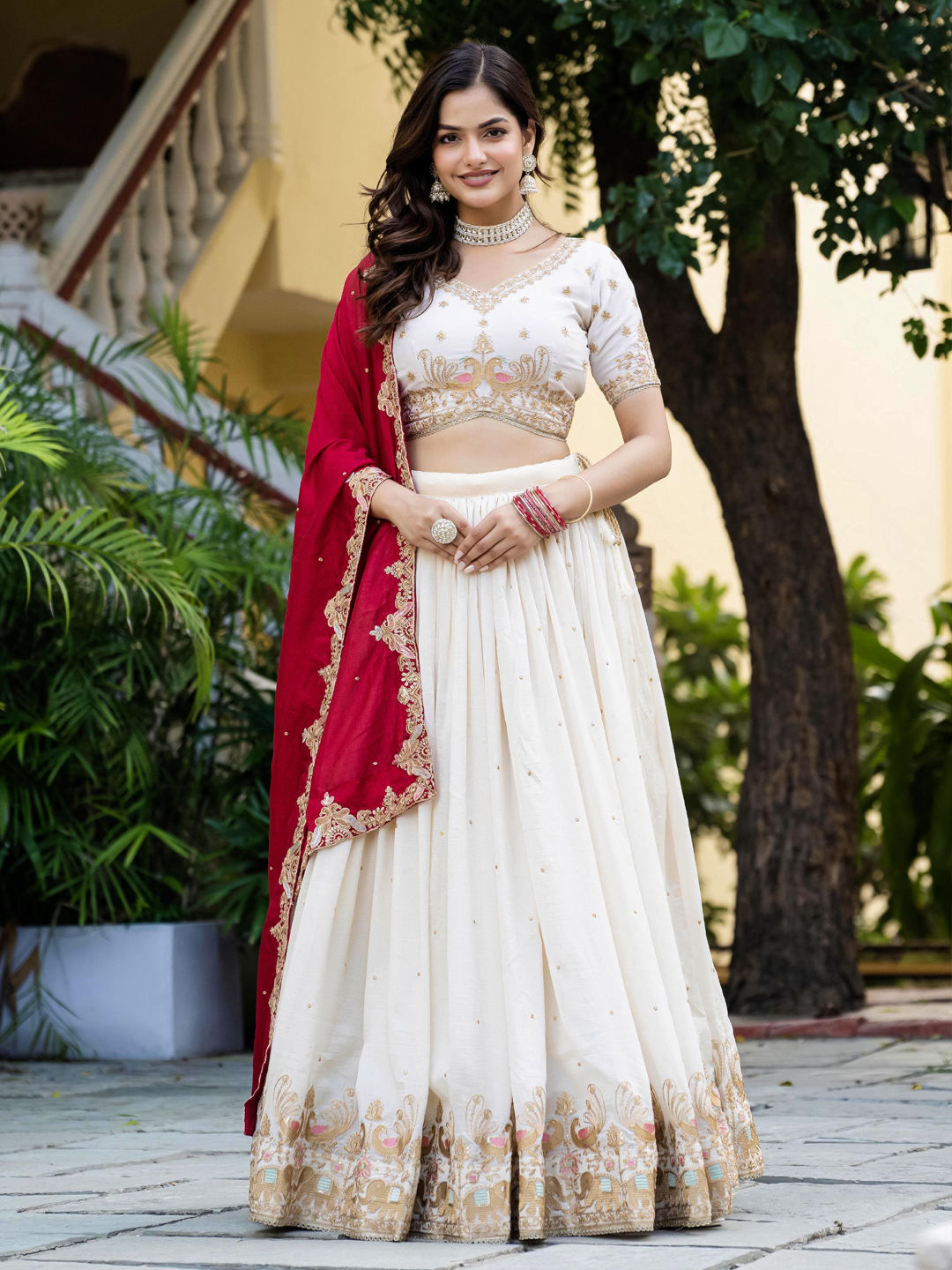 White and Off White color Lehenga in Silk fabric with Embroidered, Sequence, Thread work