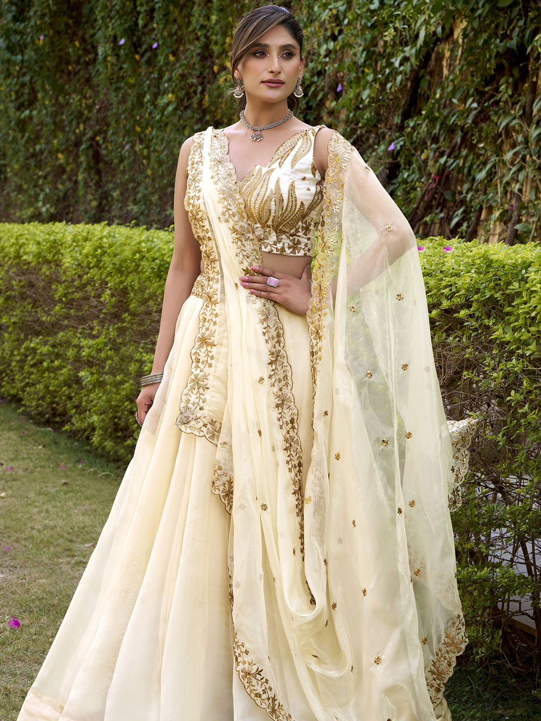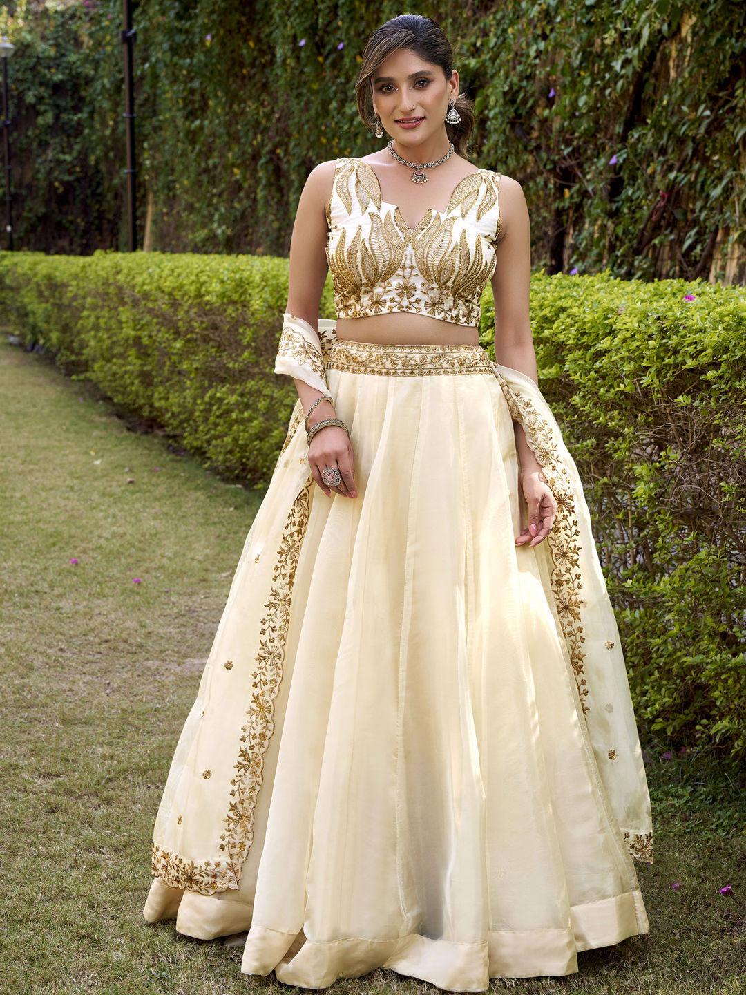 in White and Off White with Embroidered work