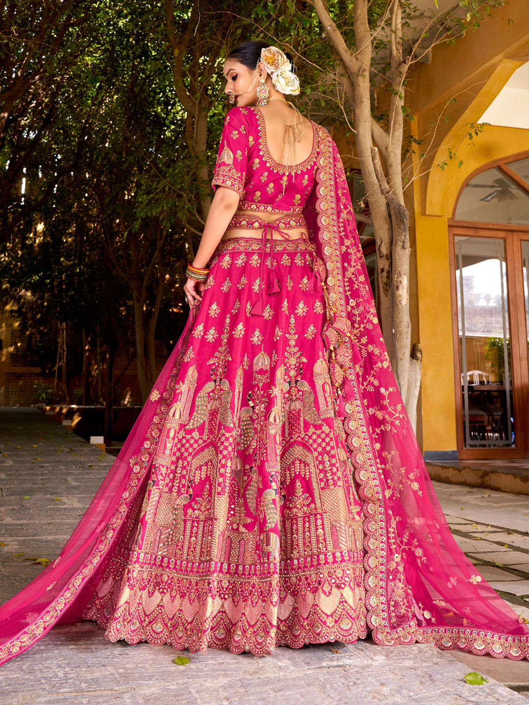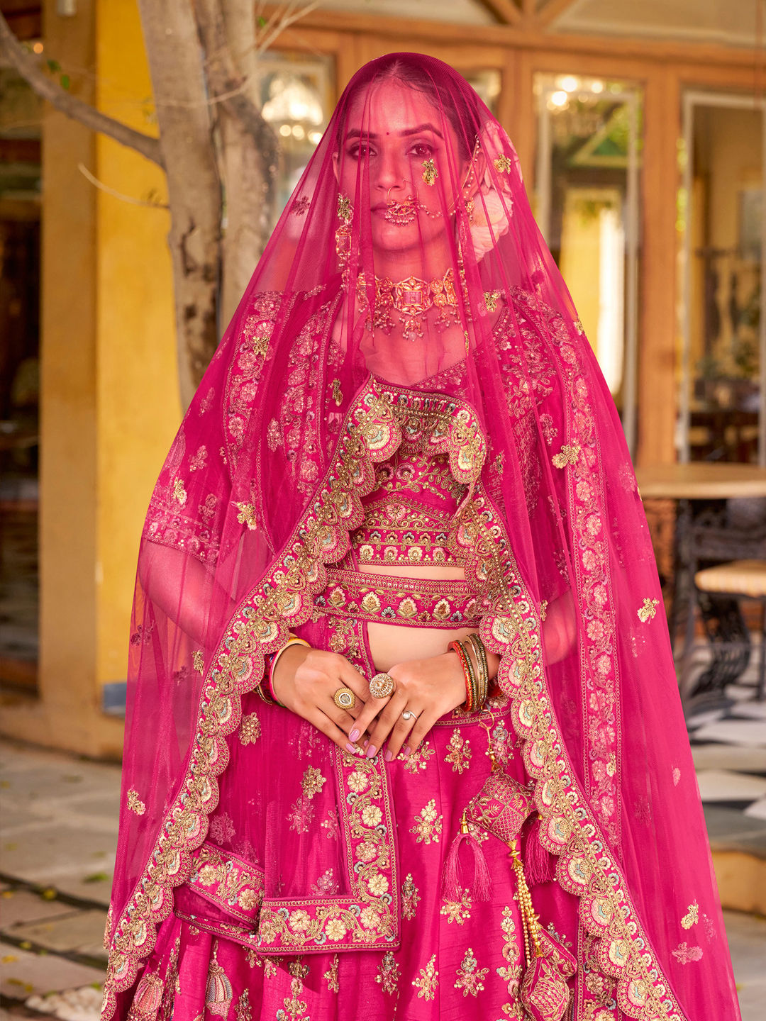 Velvet Wedding Ready to Wear Lehenga in Pink and Majenta with Zircon work