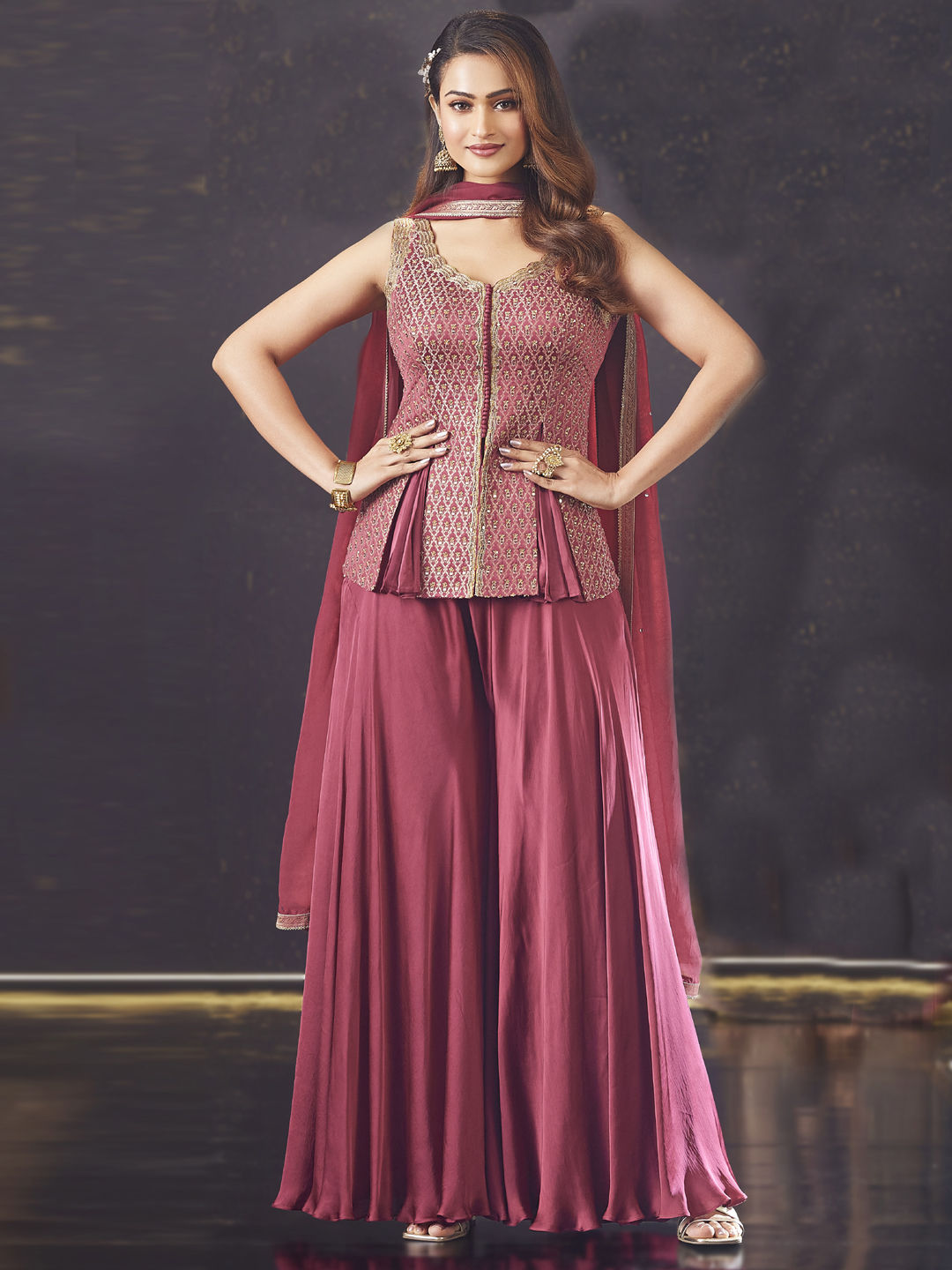 Silk Engagement Salwar Kameez in Red and Maroon with Sequence work