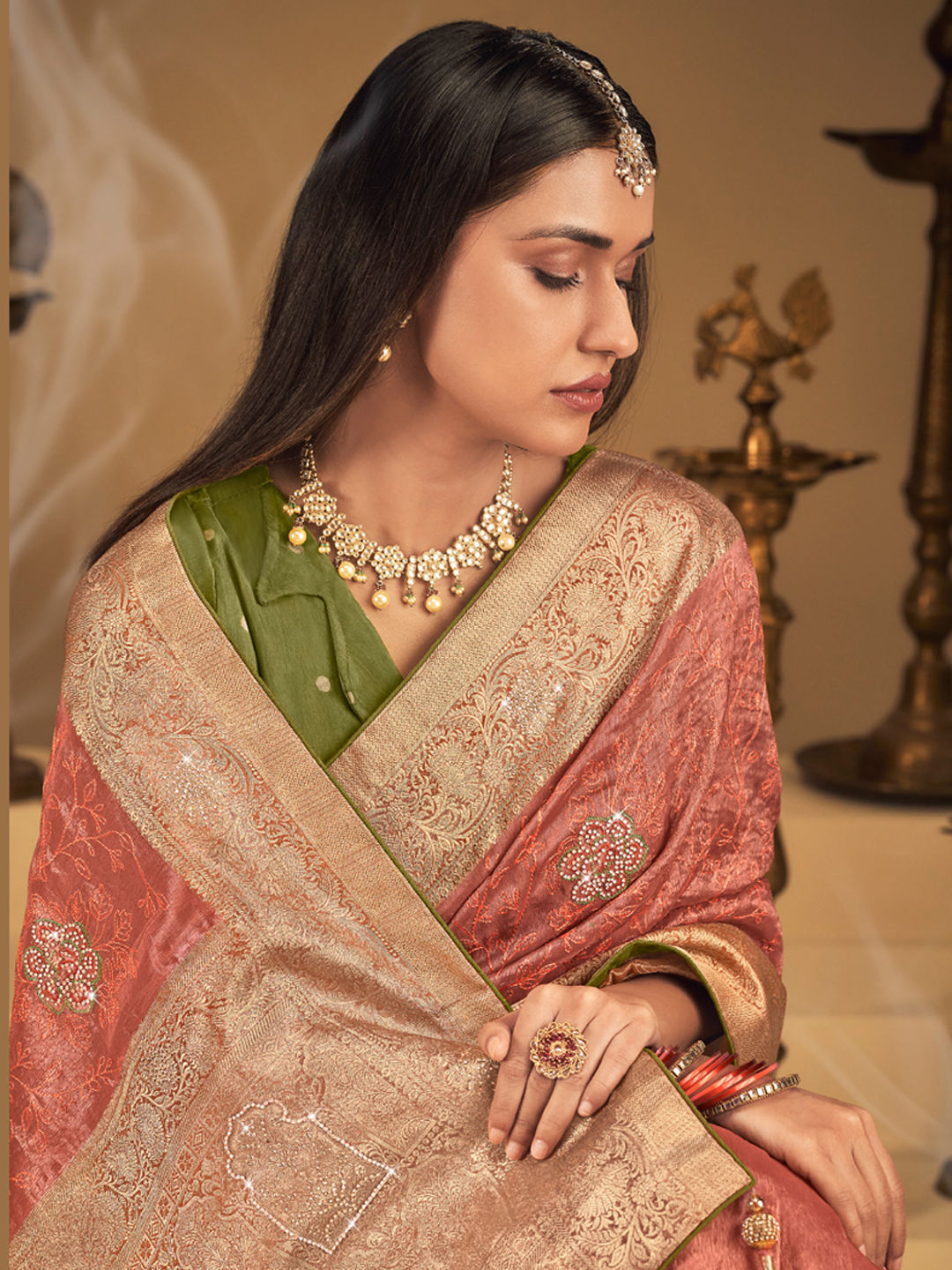 Beige and Brown color Saree in Silk fabric with Embroidered, Stone, Tye n Dye, Weaving work