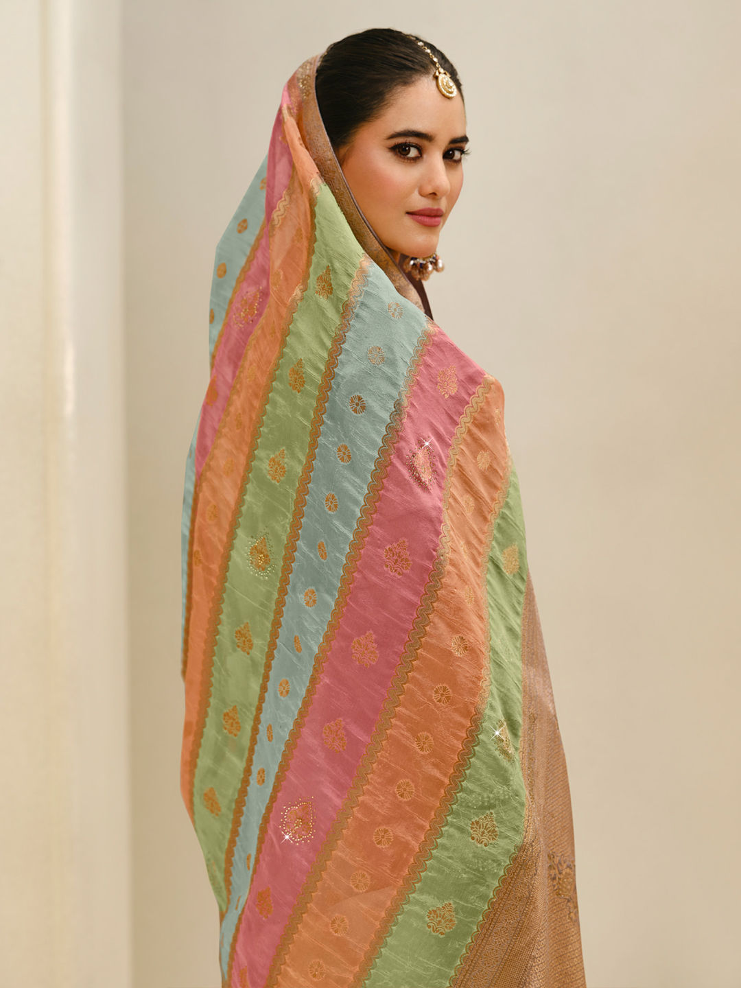 Silk Bridal Saree in Pink and Majenta with Stone work